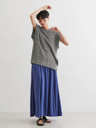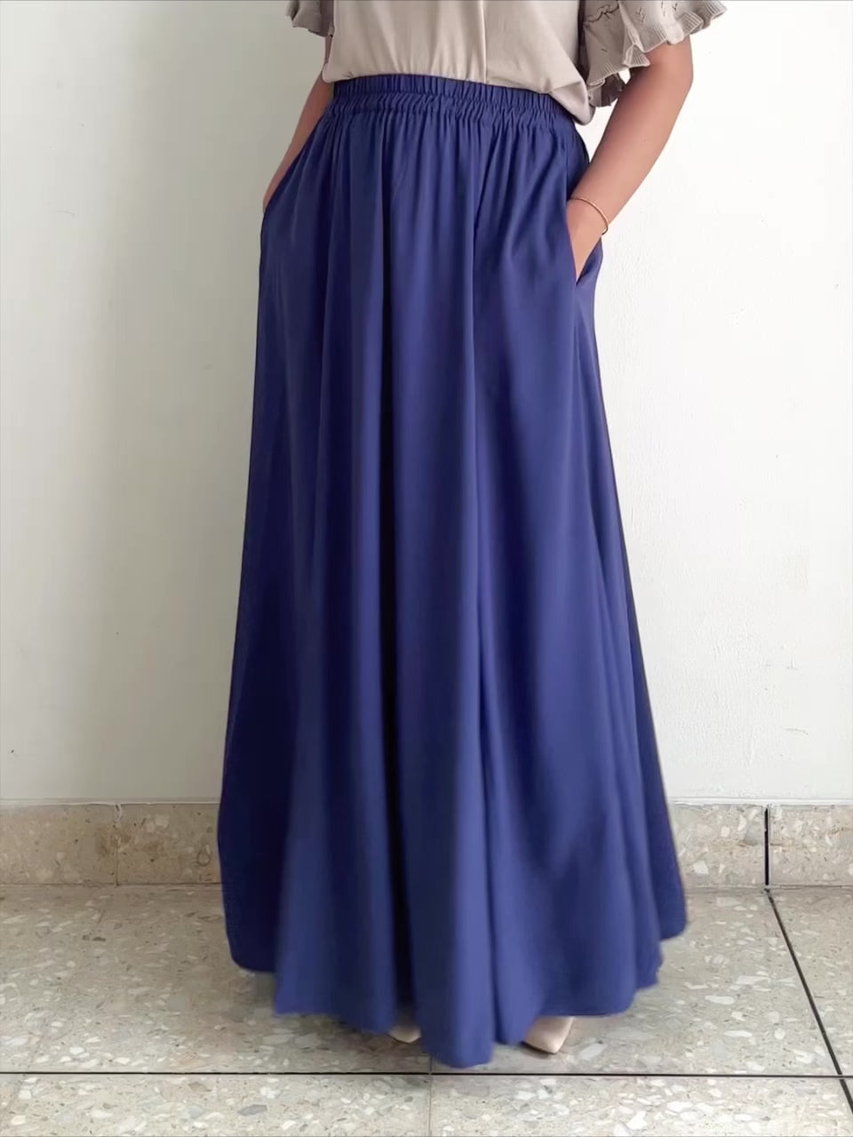 Rok wanita ini didesain dengan siluet yang melebar. Rok ini terdapat kain pada lapisan dalam sehingga tidak tembus pandang. Terdapat karet di bagian pinggang, dan memiliki saku pada bagian samping. Cocok dipadukan dengan kemeja untuk tampilan formal maupun sweatshirt untuk tampilan kasual.