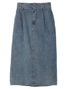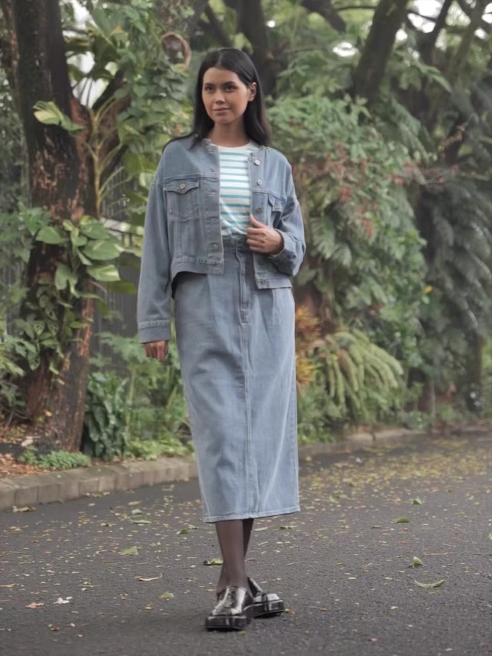 Rok panjang denim wanita ini di desain dengan siluet yang lebar dan pinggang high waist. Terdapat karet di bagian belakang dan resleting pada bagian depan, juga dua saku di sisi samping rok. Terdapat slit di bagian belakang rok sehingga memudahkan kamu untuk berjalan lebih leluasa.