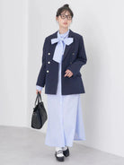 Blazer wanita lengan panjang ini di desain dengan detail kancing fungsional dan terdapat furing didalamnya. Dilengkapi dengan saku depan yang fungsional dan penutup depan berkancing. Cocok untuk outfit ke kantor atau untuk acara formal.
