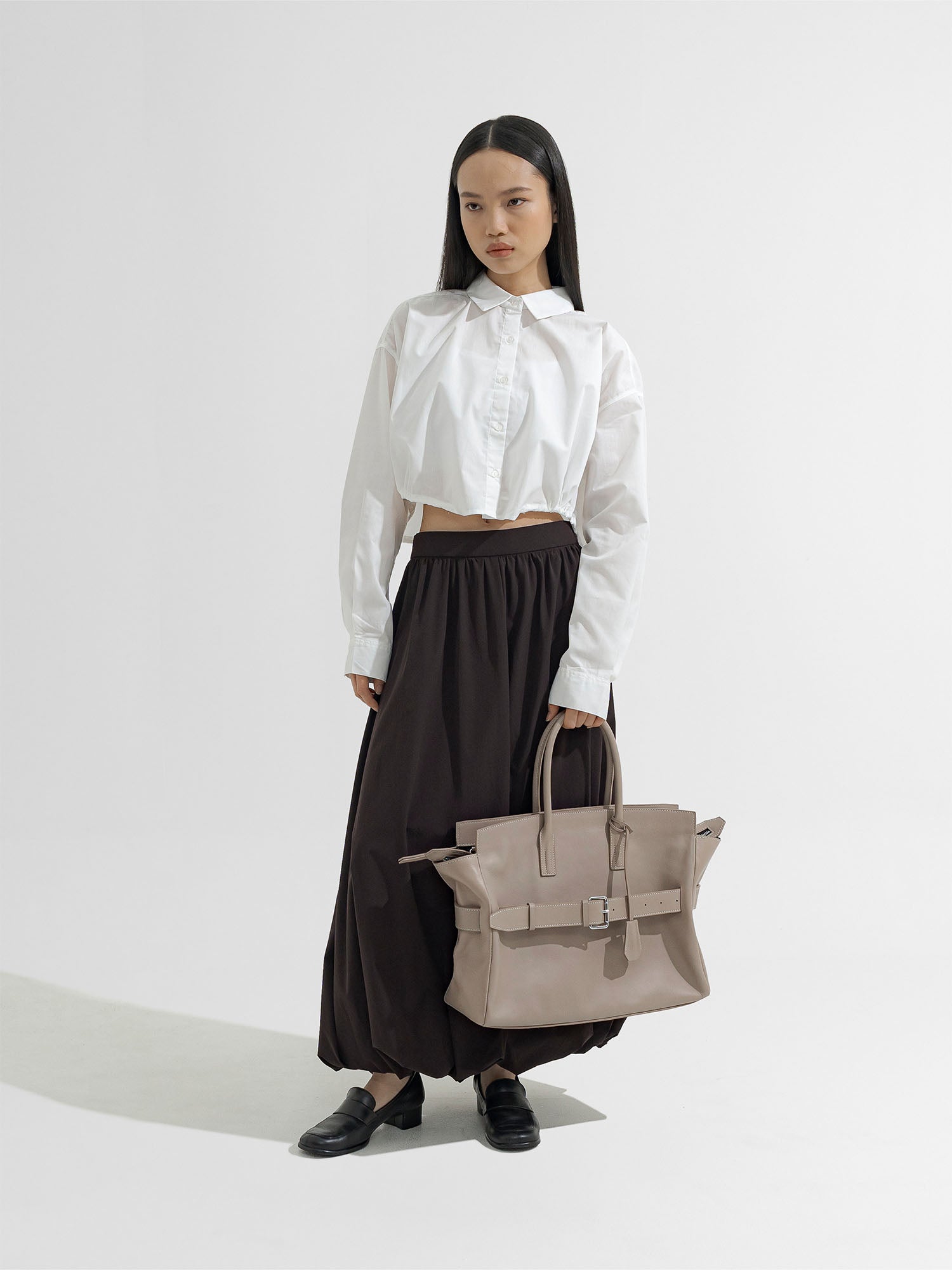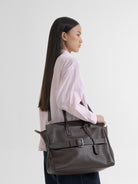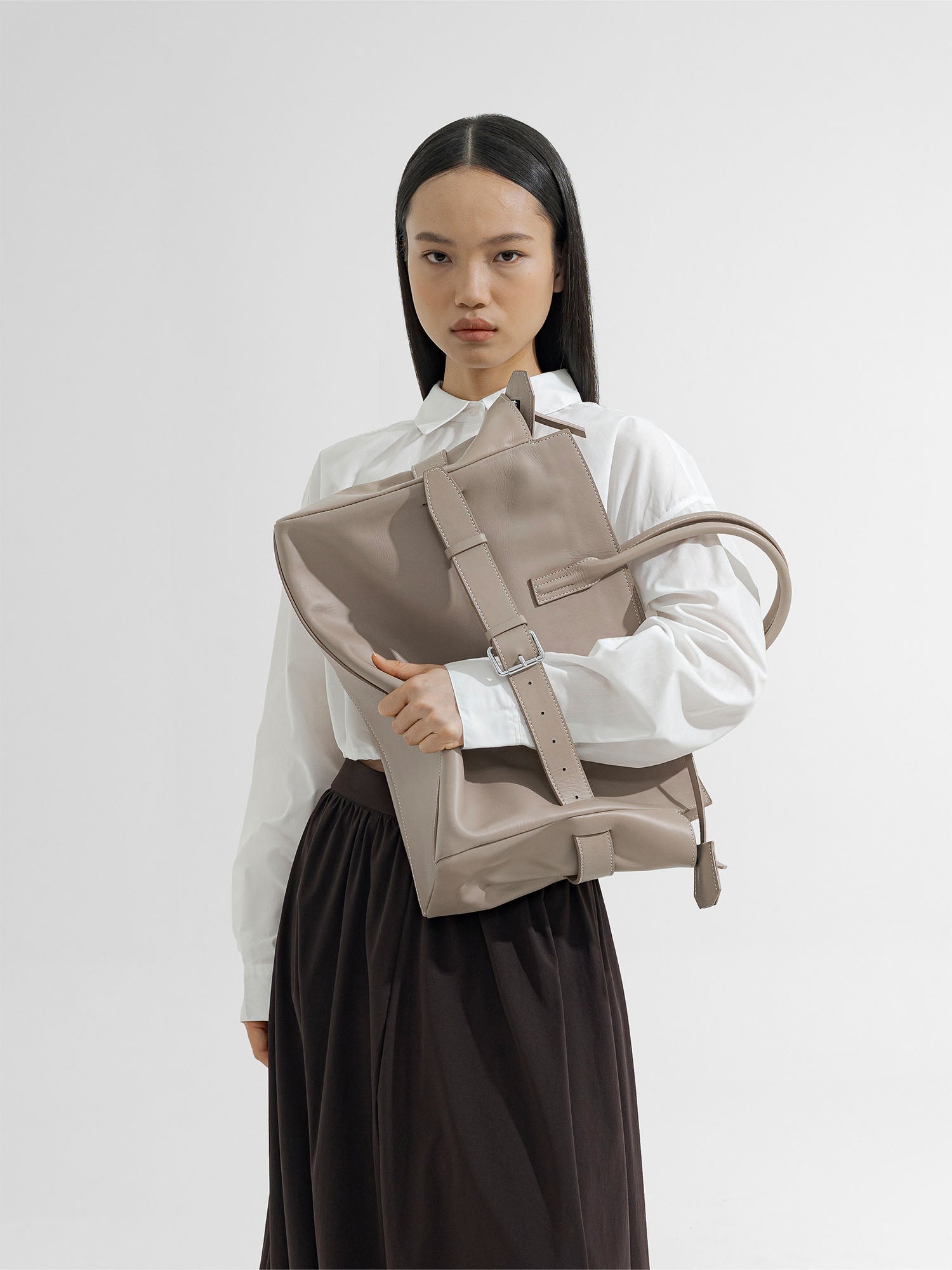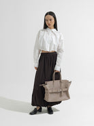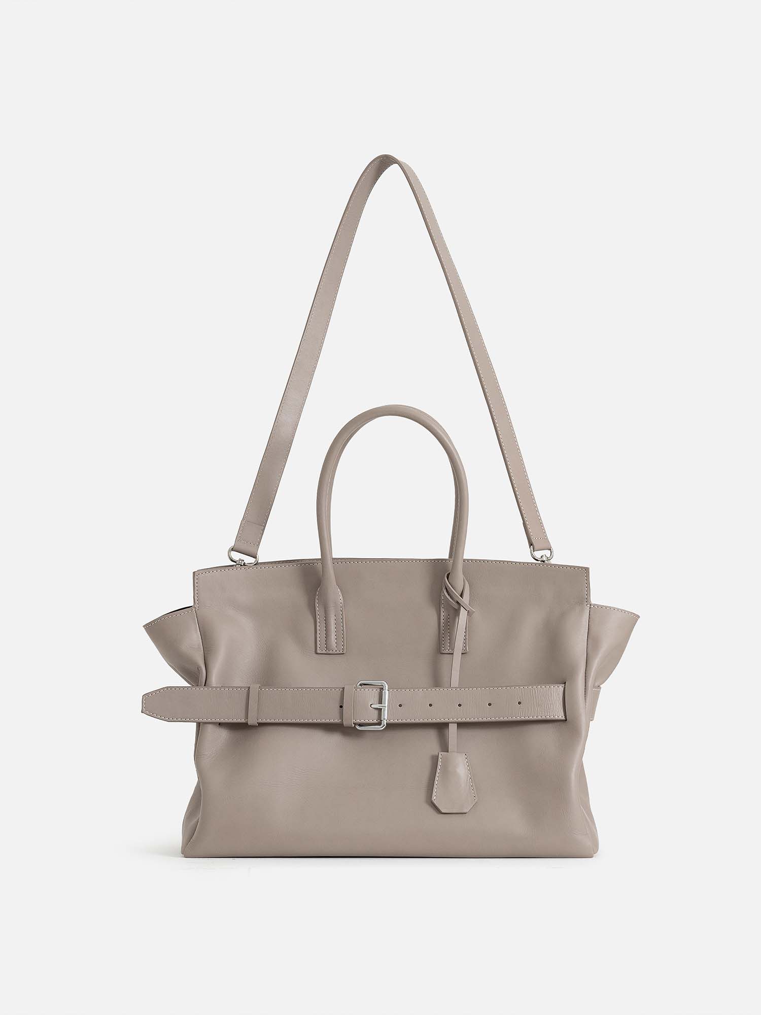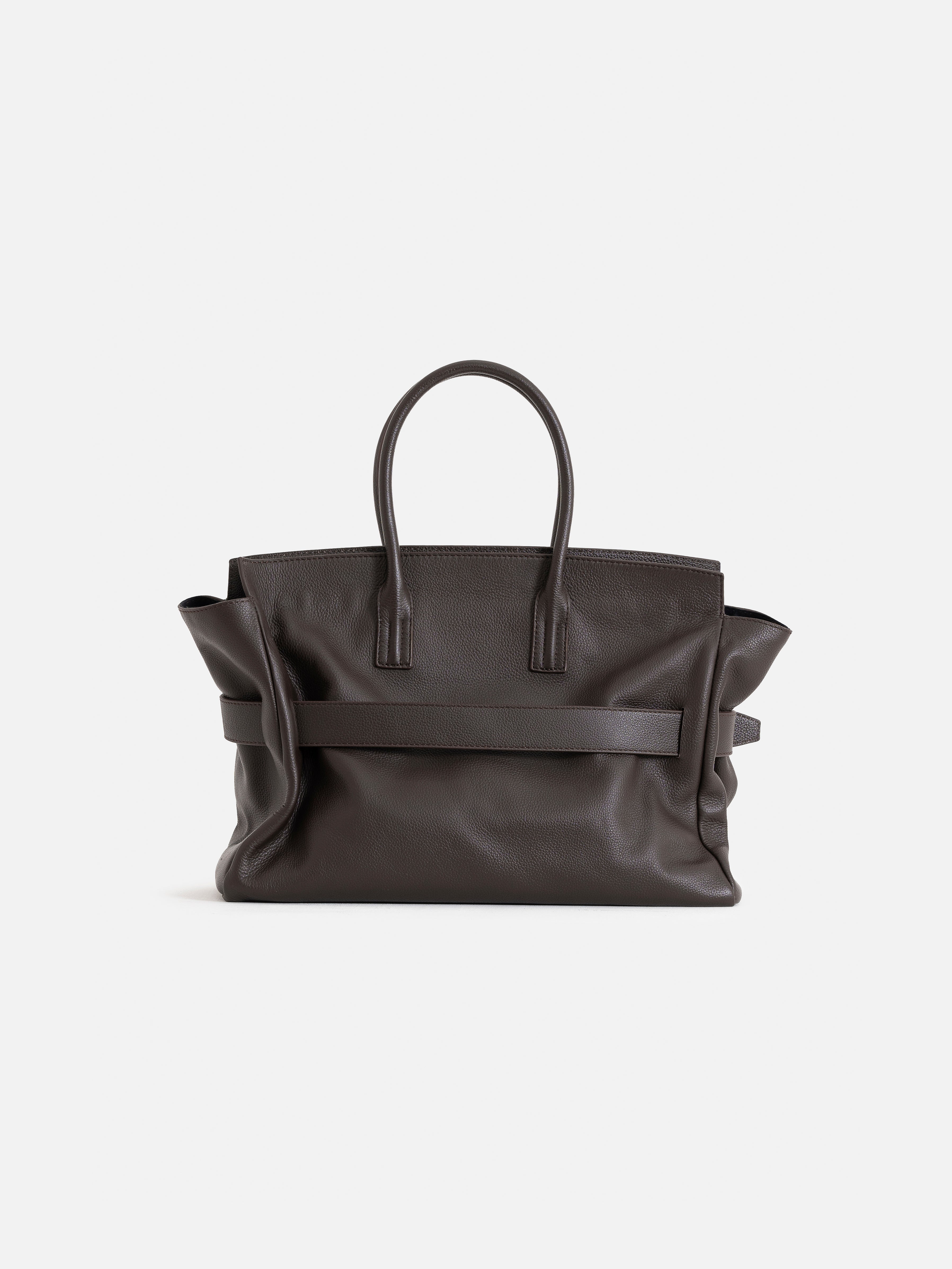 The Affix Bag is a bold and spacious statement piece designed for versatility and functionality. Featuring a structured yet slightly slouchy silhouette, it balances a refined aesthetic with everyday practicality. The top tubular handles allow for a comfortable grip, while the detachable strap provides the option to wear it over the shoulder.