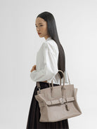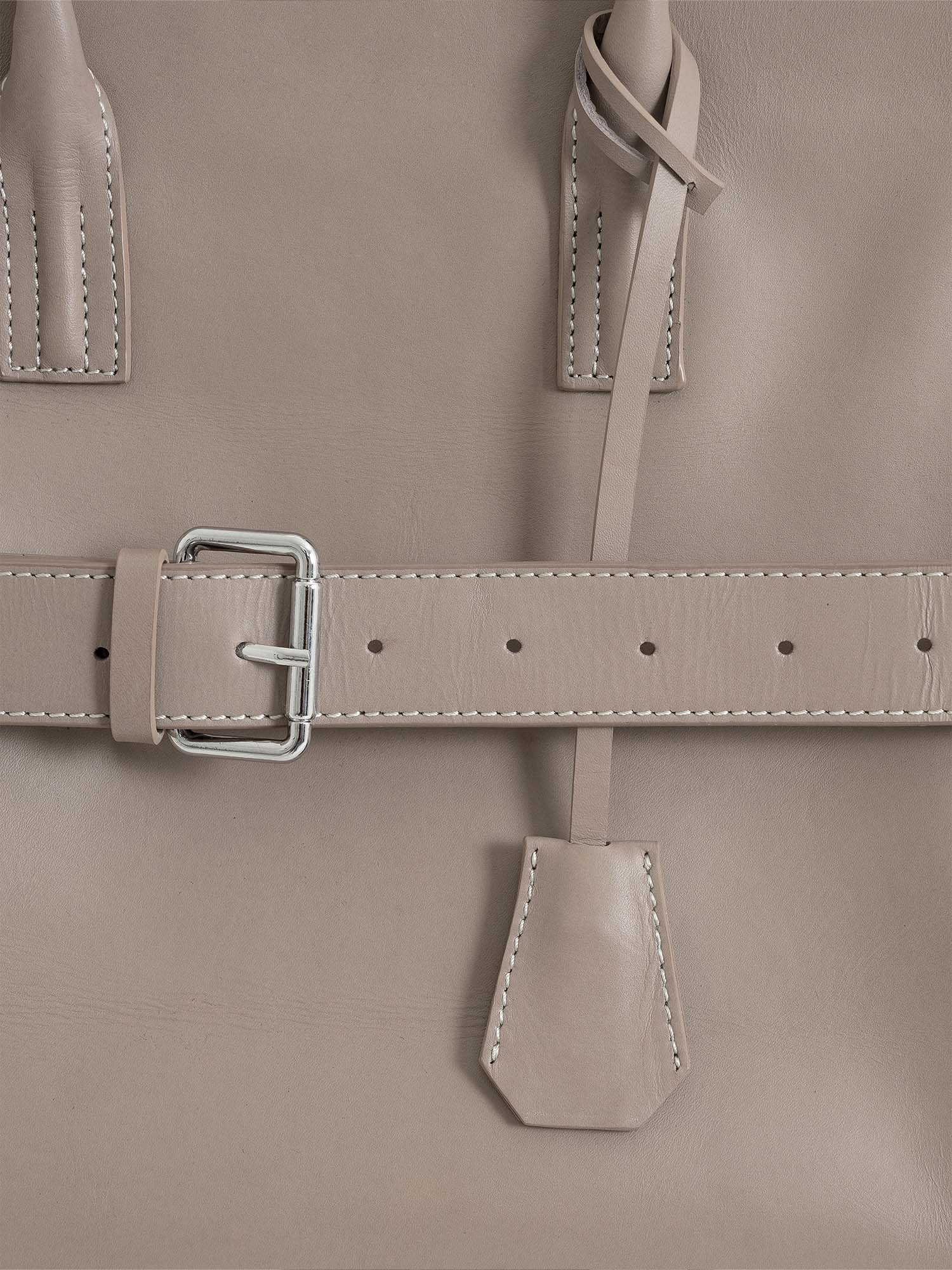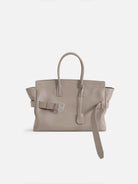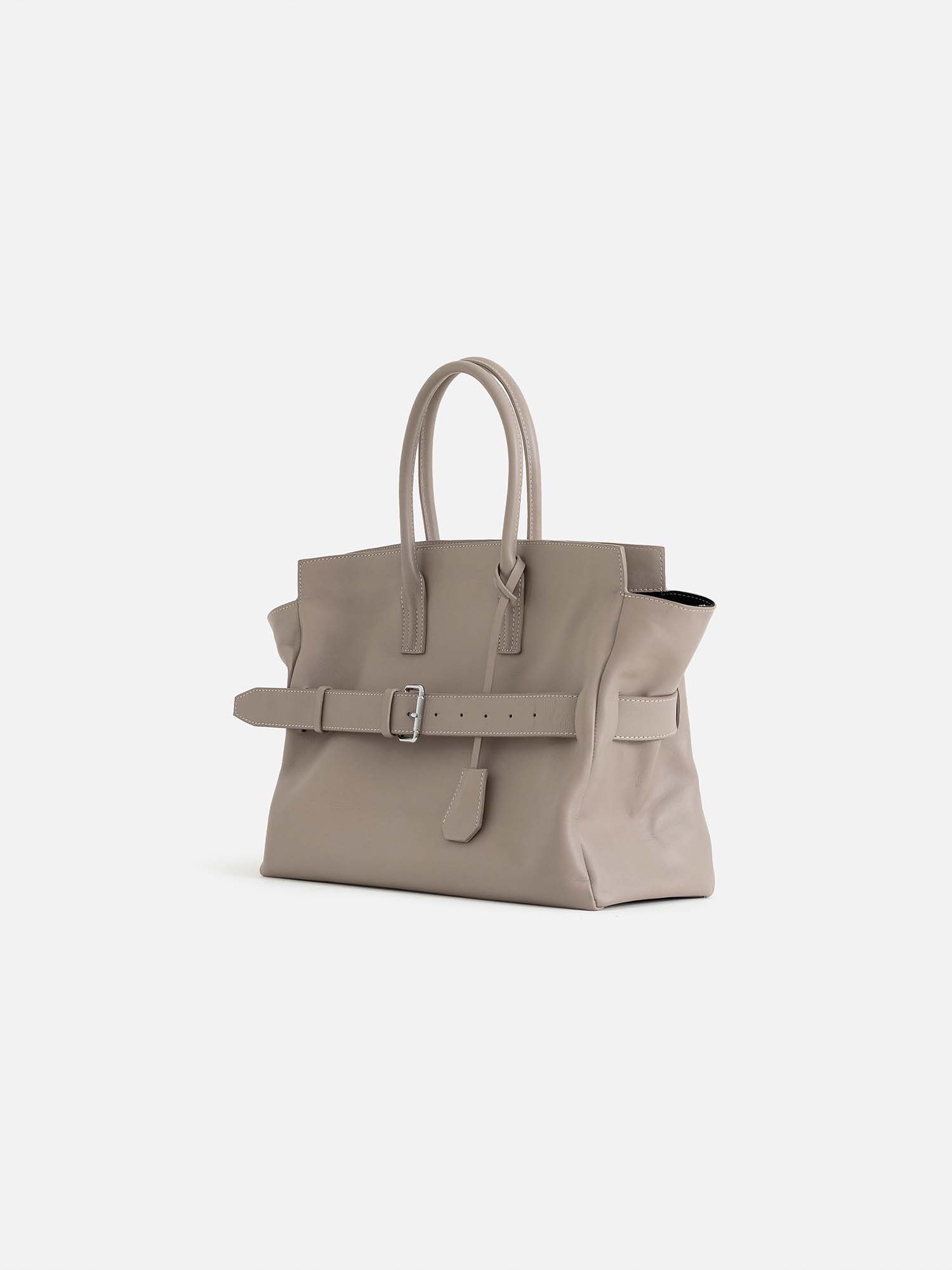 A standout feature is the adjustable leather belt with a silver-tone buckle, adding a distinctive design element and enhancing its secure closure. The spacious main compartment is complemented by an interior slip pocket and zip pocket for better organization. Lined with soft cotton, this bag is perfect for those who need a chic yet practical carry-all for daily use.