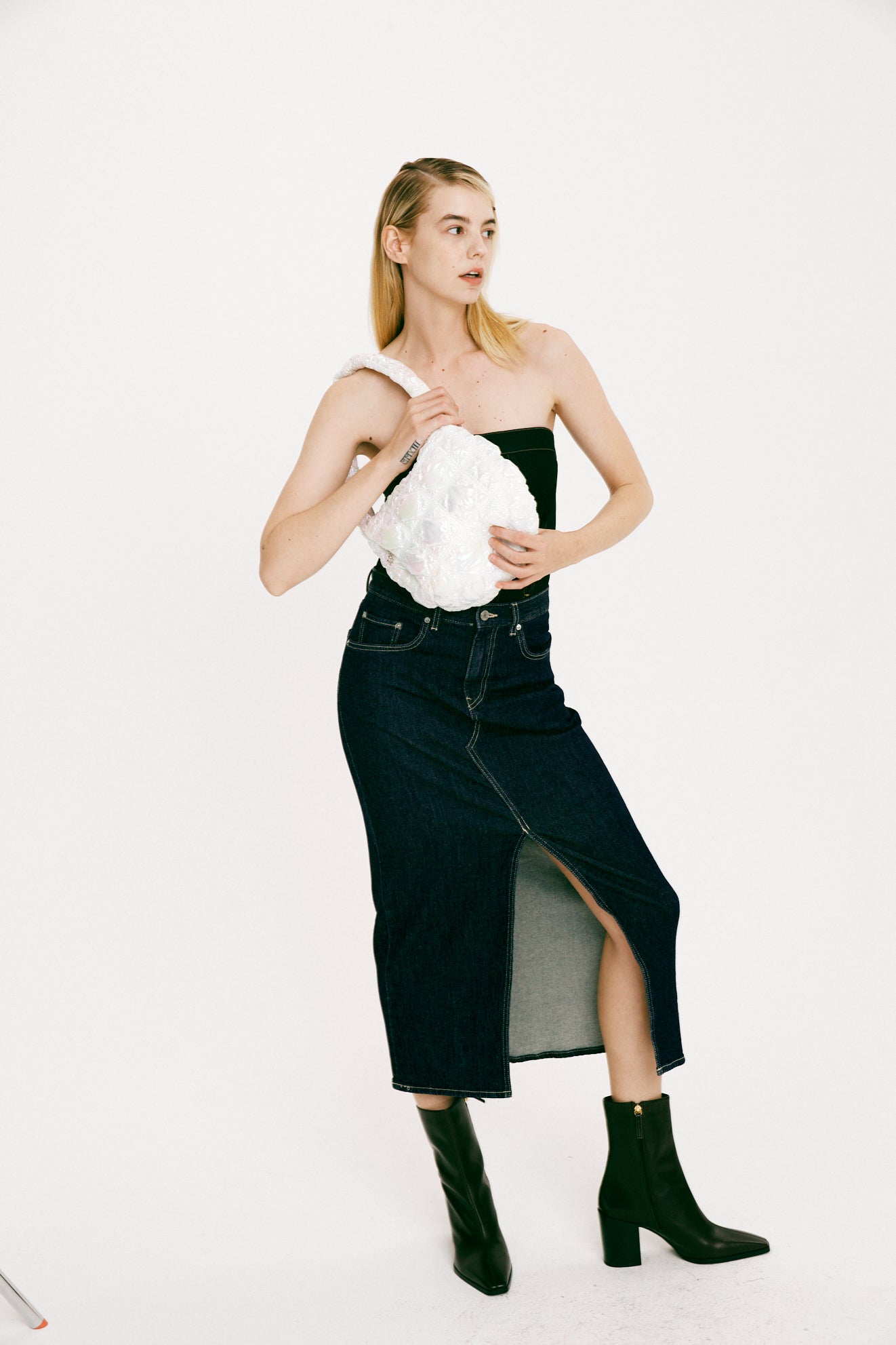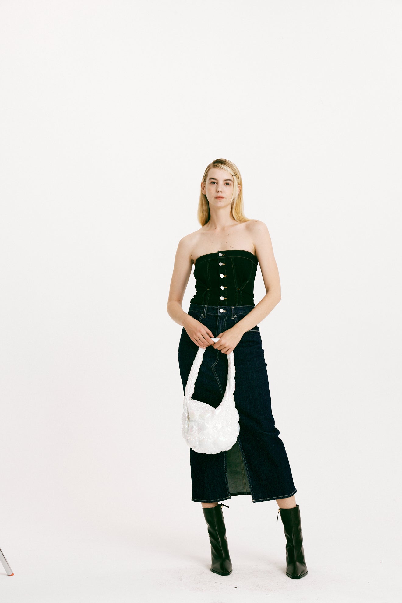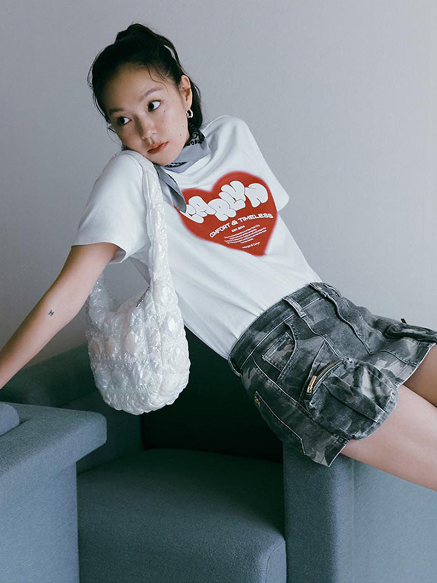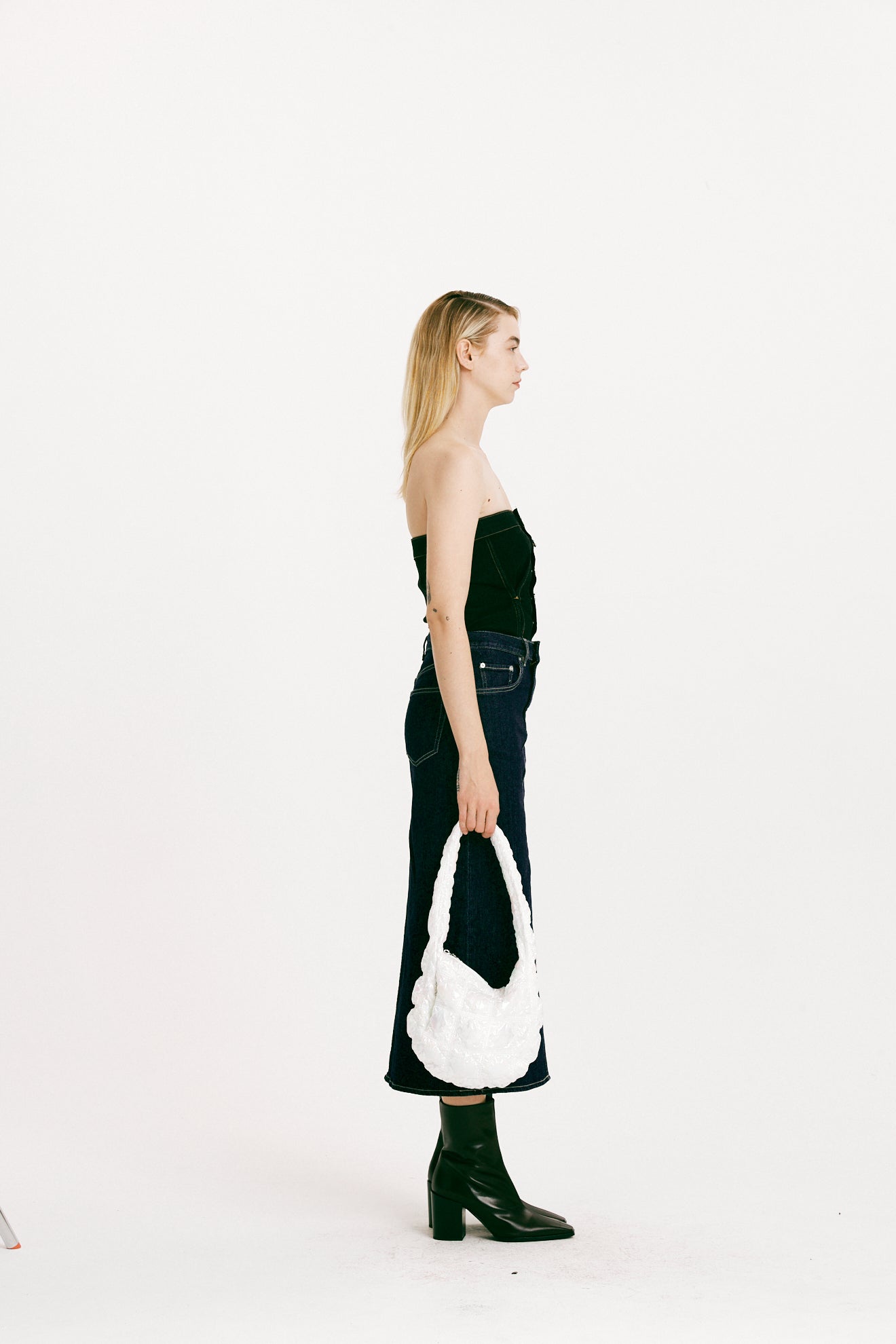 New version of soft m which has delicate and brilliant opal. Quilting details made of elastic thread. So it can be worn as a shoulder, tote. Light weight and medium size.