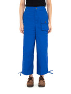 Tampil stylish dengan sentuhan utilitarian bersama celana cargo berpotongan wide-leg yang nyaman dan fungsional. Dilengkapi dengan kantong besar di bagian depan dan belakang, serta detail adjustable drawstring di bagian ujung kaki untuk tampilan yang lebih fleksibel.