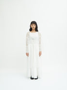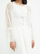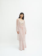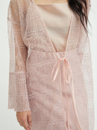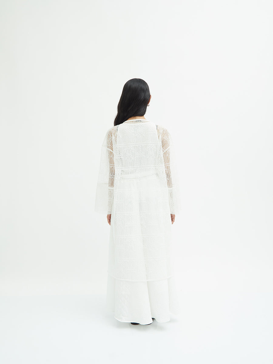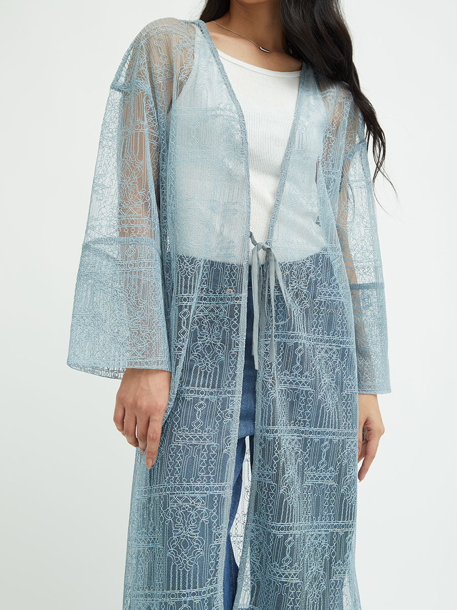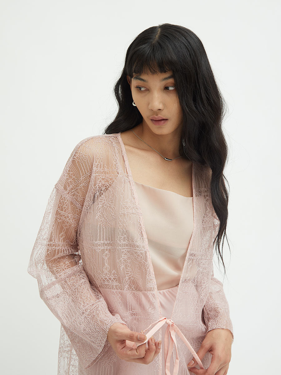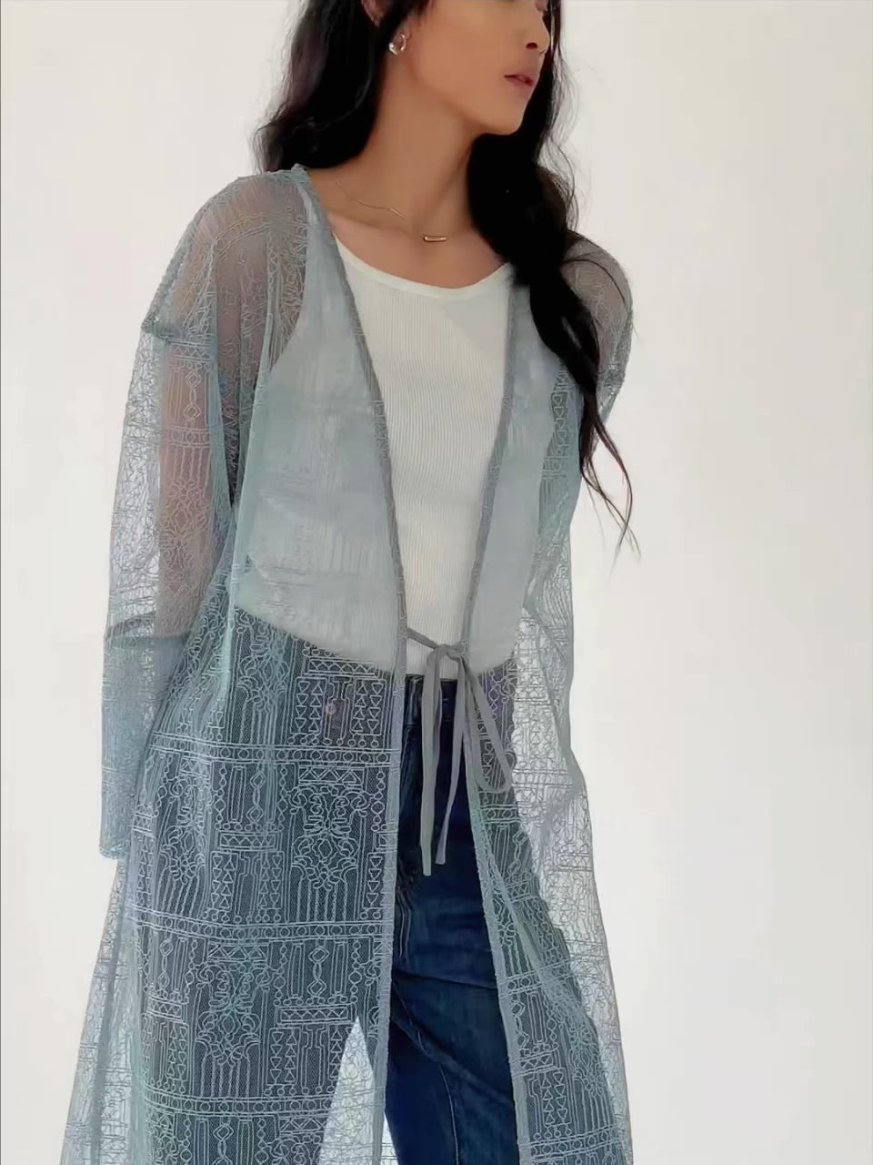Luaran dengan aksen renda yang elegan. Memiliki tali di bagian belakang. Cocok untuk dipakai dalam kegiatan sehari-hari, baik itu untuk acara formal atau informal.