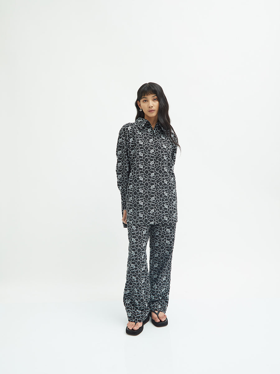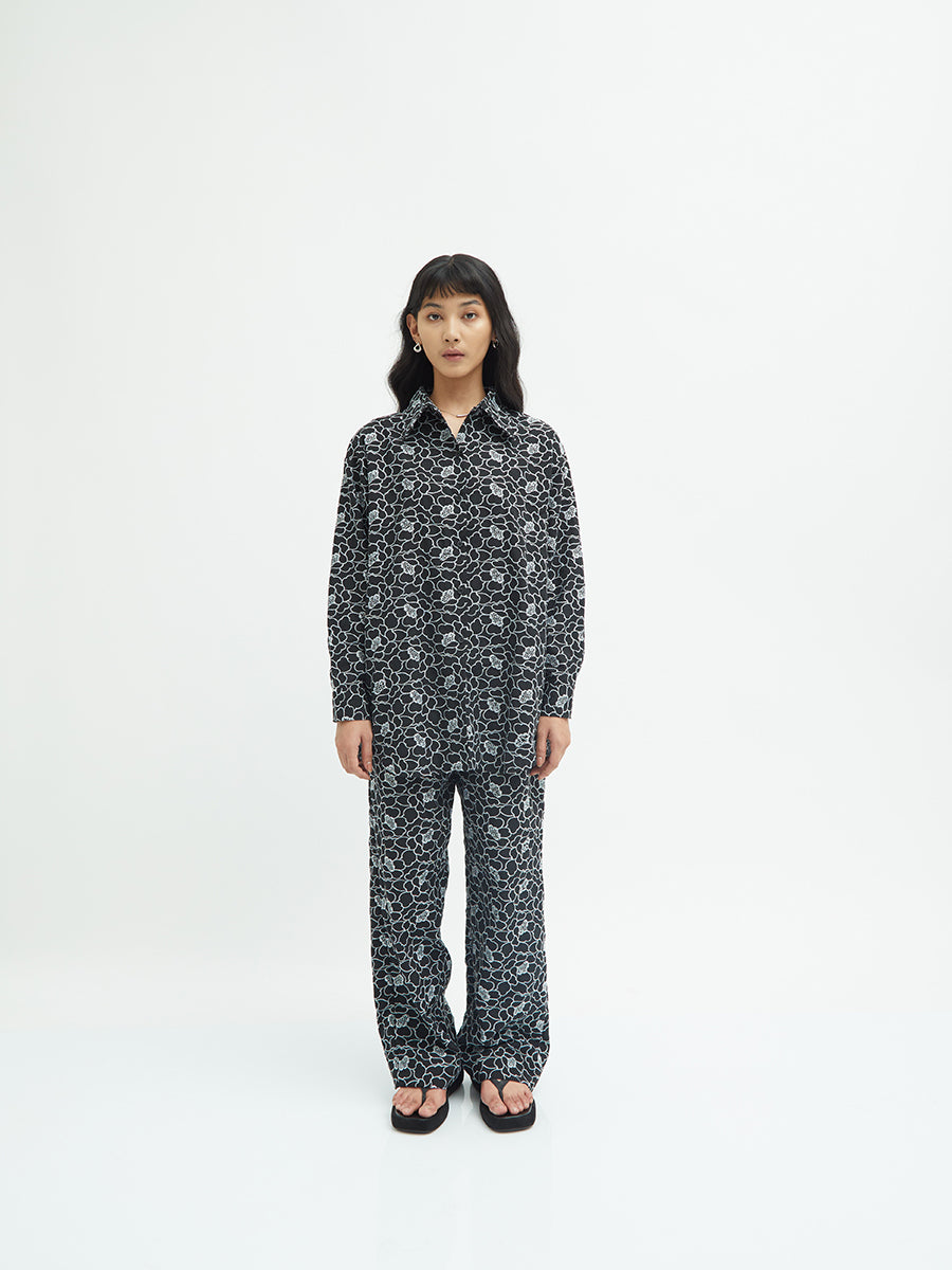 Celana panjang ini mempunyai ornamen-ornamen kecil yang memberikan kesan mewah. Memiliki saku di bagian kiri dan kanan, dan karet di bagian belakang pinggang. Cocok dipakai untuk tampilan kasual dan formal. Cocok untuk dipakai dalam kegiatan sehari-hari, baik itu untuk acara formal atau informal.