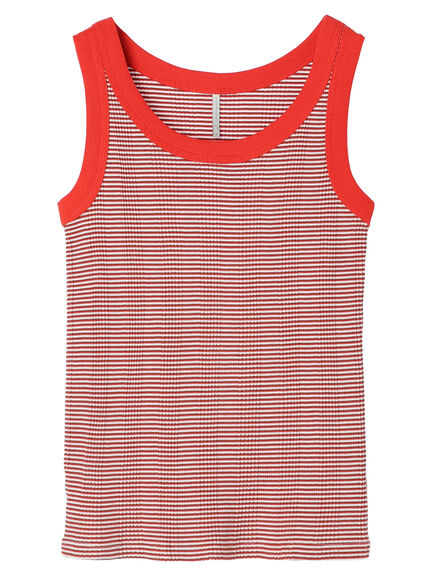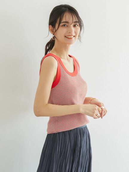 Tanktop wanita ini didesain dengan motif stripe dan leher bulat. Cocok untuk dipadukan dengan berbagai macam outfits, casual maupun formal, nyaman untuk dipakai sehari-hari. Dapat dikenakan langsung atau dengan luaran.