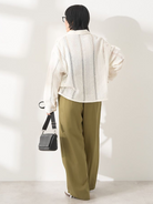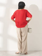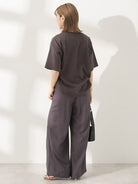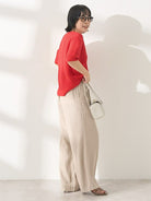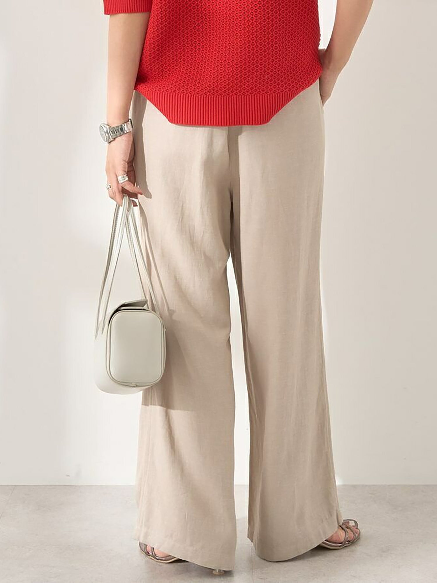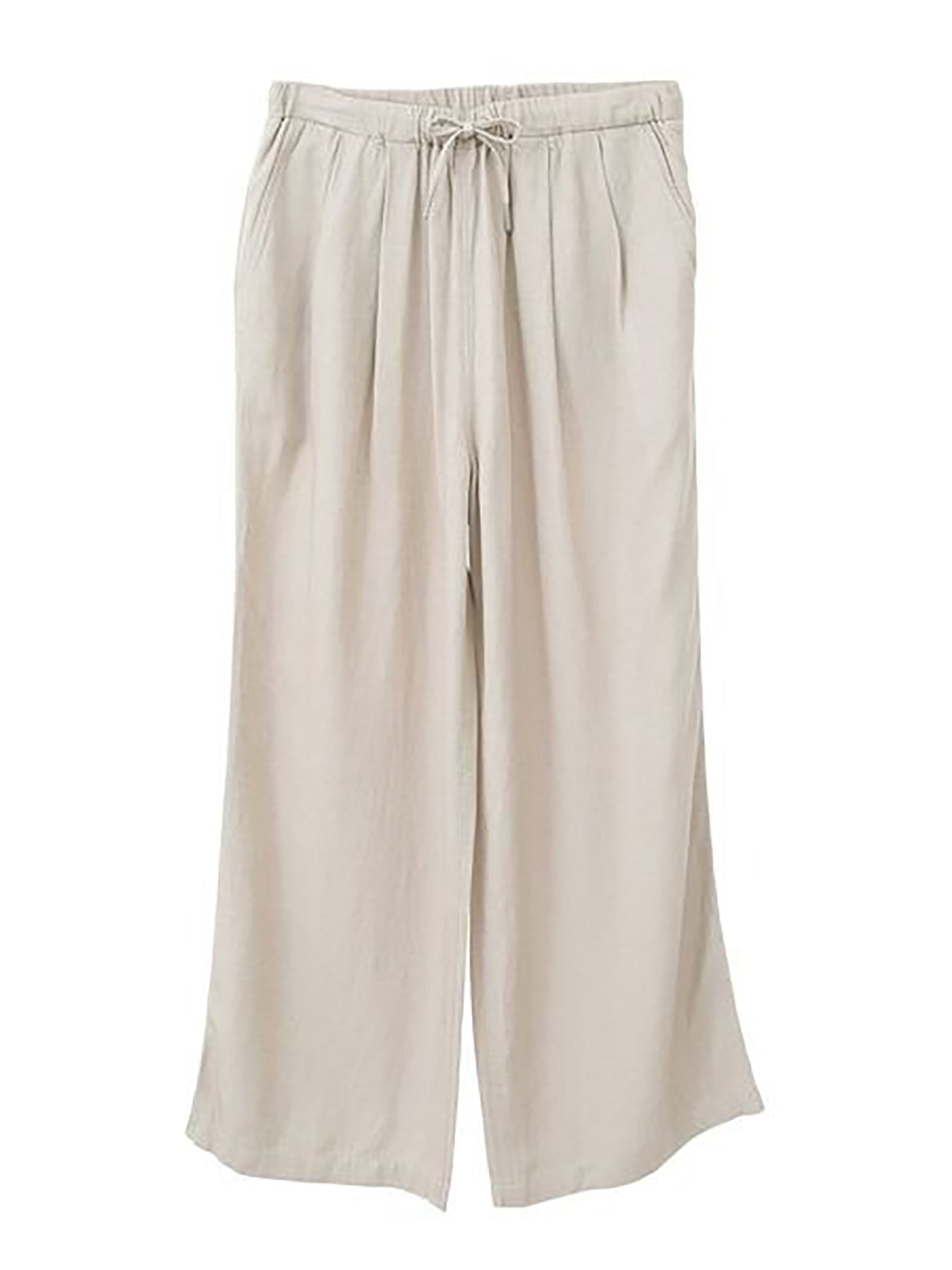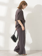 Celana wide pants dengan bahan linen blend yang terasa adem dan ringan di kulit. Detail lipit di bagian pinggang memberi ruang gerak yang nyaman, sementara potongan jatuh lurus bikin siluet terlihat lebih jenjang. Desainnya simpel dan mudah dipadukan dengan berbagai atasan untuk look harian yang rapi.