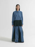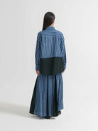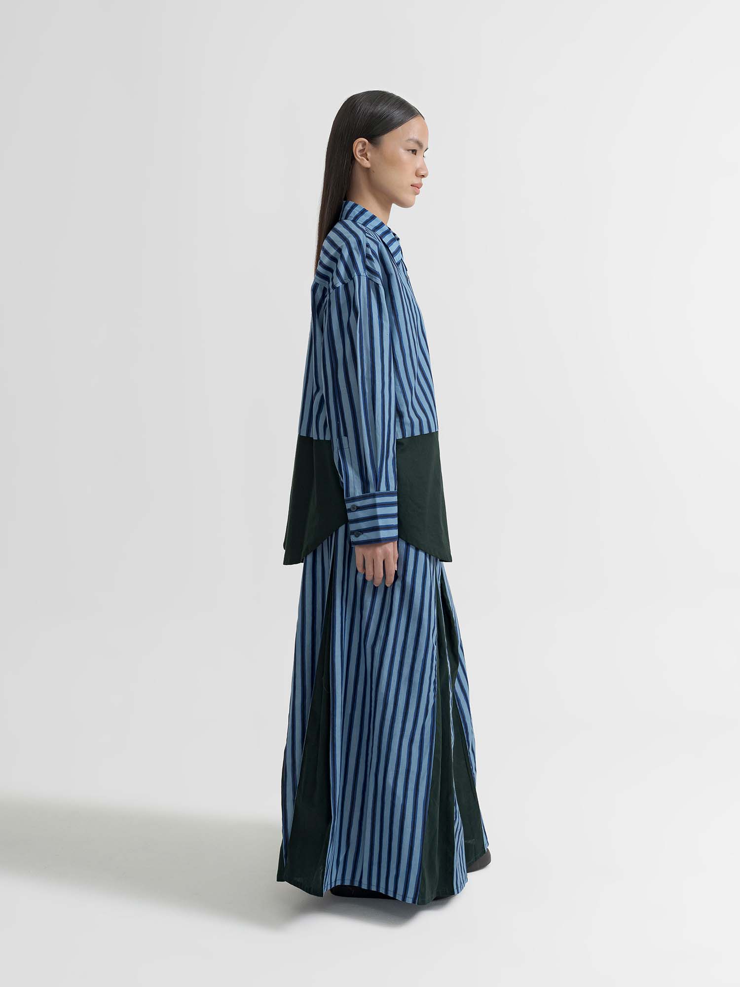 Kemeja Rhea Shirt dari BOWN Capsule Collection menampilkan desain garis vertikal bernuansa biru indigo dengan sentuhan kontras di bagian bawah. Terbuat dari 100% katun yang lembut dan breathable, kemeja ini memberikan tampilan kasual namun tetap elegan. Potongan longgar dan siluet boxy menciptakan kenyamanan maksimal, cocok dipadukan dengan rok maupun celana untuk tampilan santai yang berkarakter.