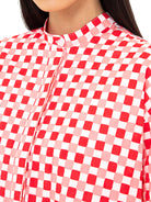 Tampil stylish dan effortless dengan kemeja oversized motif kotak yang playful dan modern. Desainnya yang longgar memberikan kenyamanan maksimal, sementara kerah mandarin dan kancing tersembunyi menciptakan tampilan yang sleek dan minimalis.
