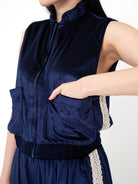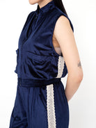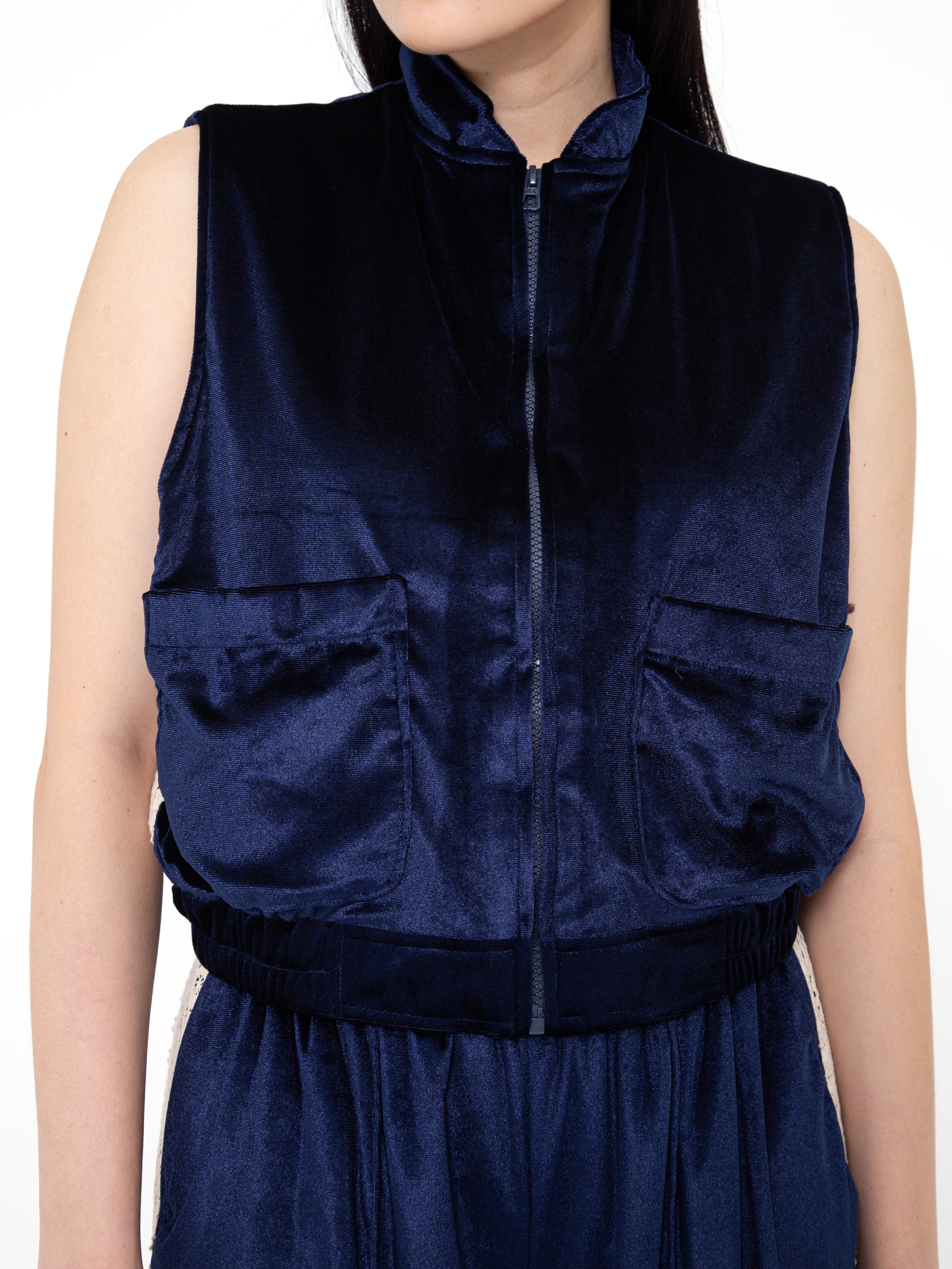 Rompi wanita ini didesain dengan bukaan resleting depan dan karet di bagian bawah. Terdapat detail lace pada bagian sisi rompi sehingga terlihat elegan. Terdapat furing sehingga tidak tembus pandang. Terdapat dua saku yang berfungsi pada bagian depan. Memiliki bahan yang halus sehingga nyaman saat dipakai. Cocok untuk tampilan kasual atau formal.