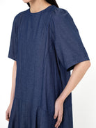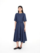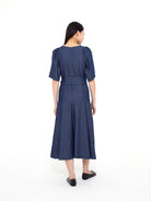 Dibagian belakang terdapat jahitan vertical, serta terdapat desain flare di bagian Bawah dress.