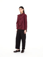 Dilengkapi dengan kancing di bagian depan, bagian belakang terdapat desain layer yang sederhana.