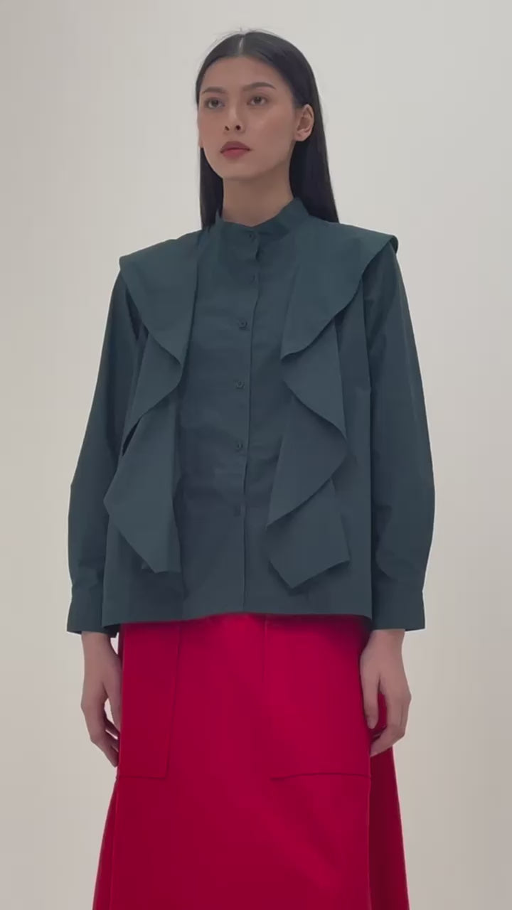 Bagian Bawah baju terdapat desain asimeteris menciptakan kesan elegan saat digunakan.