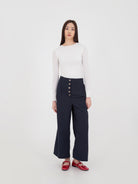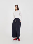Danisha Pants menghadirkan tampilan klasik dan elegan dengan desain high-waist dan aksen kancing di bagian depan. Celana ini ringan, nyaman, dan mudah dirawat.