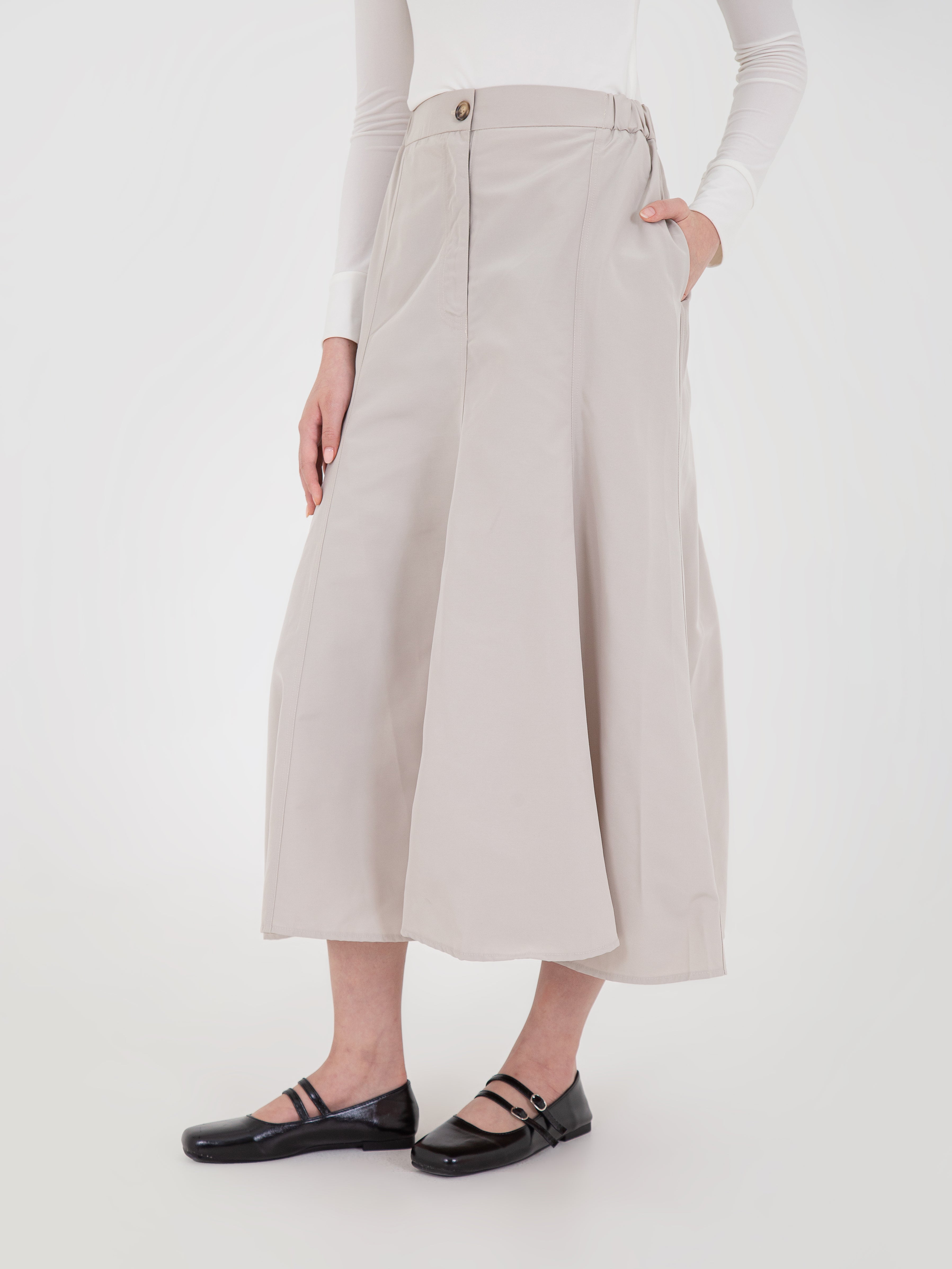 Elif Skirt menghadirkan desain minimalis dan elegan dengan potongan A-line midi yang timeless. Rok ini ringan, nyaman, dan tidak mudah kusut, cocok untuk aktivitas sehari-hari maupun acara formal.