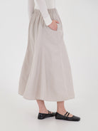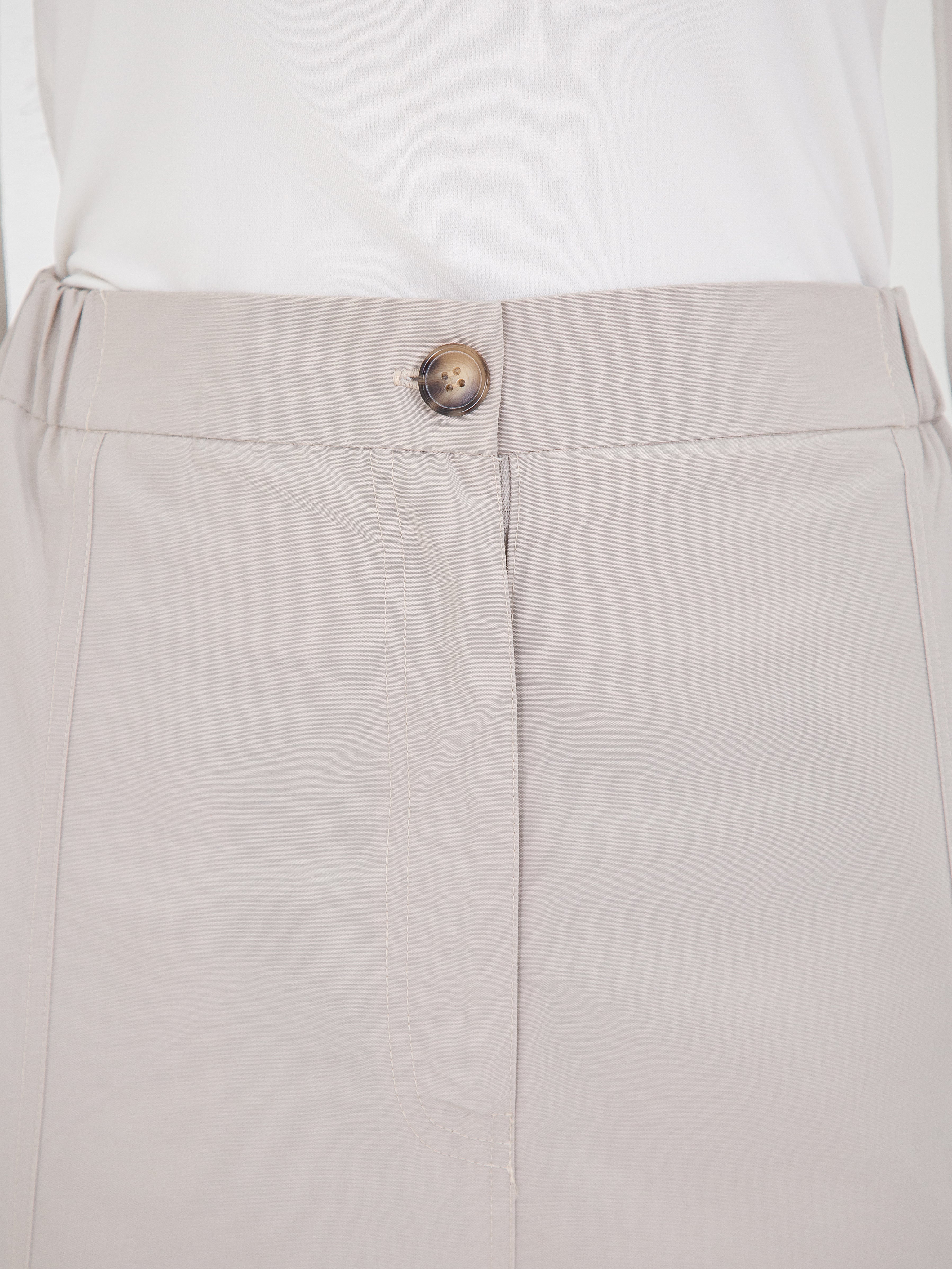 Dilengkapi dengan karet elastis di bagian pinggang, rok ini memberikan kenyamanan maksimal dan fleksibel untuk berbagai ukuran. Detail saku samping membuatnya lebih praktis, sementara kancing depan menambah sentuhan klasik. Tersedia dalam warna Khaki, nuansa netral yang mudah dipadukan dengan berbagai atasan.
