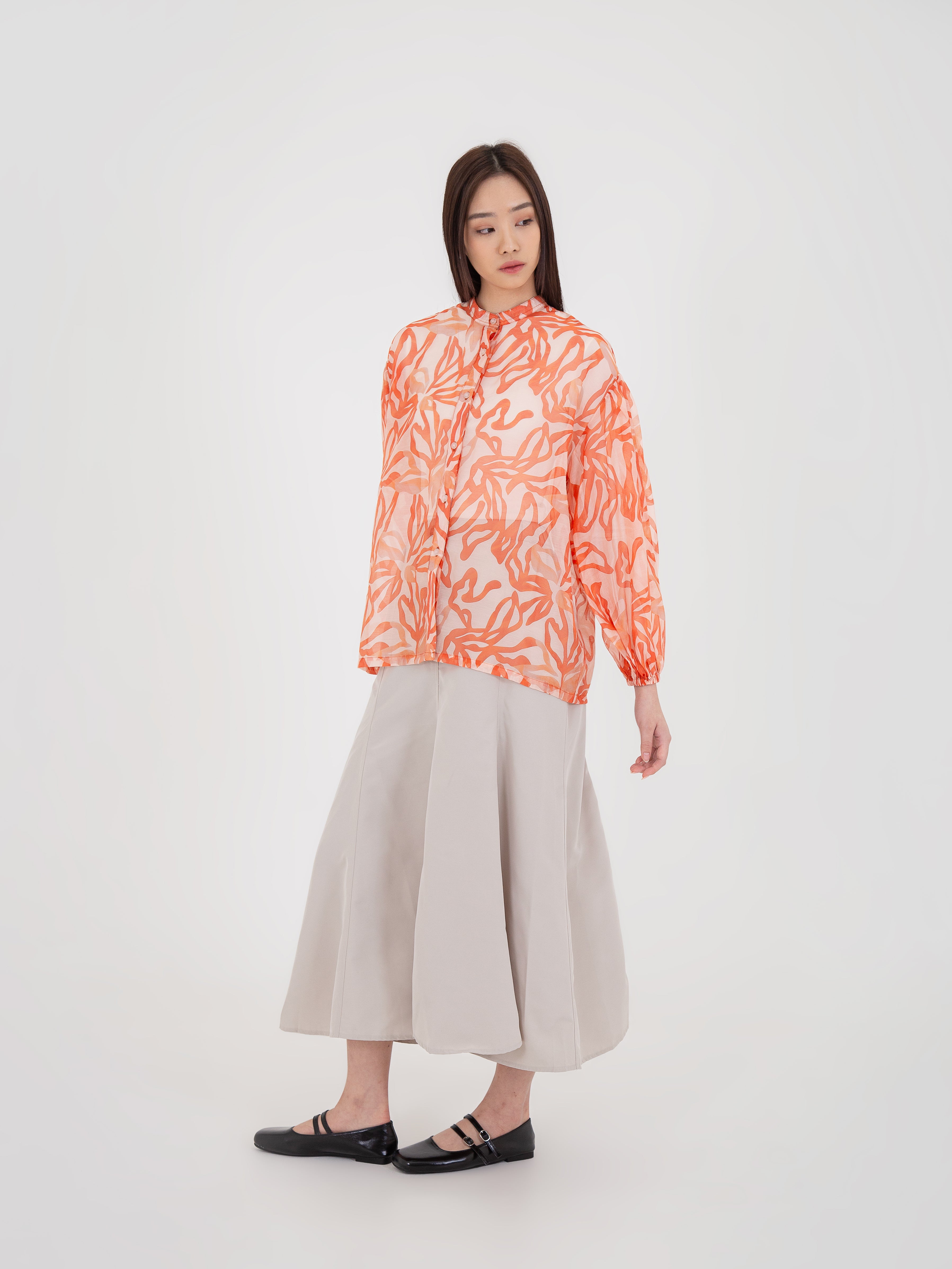 Eliza Blouse adalah pilihan sempurna bagi Anda yang mencari gaya chic dengan sentuhan modern. Blouse ini ringan, flowy, dan nyaman dipakai sepanjang hari. Dengan motif abstrak berwarna merah yang dinamis, blouse ini memberikan tampilan yang berani namun tetap elegan.