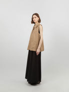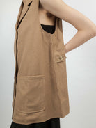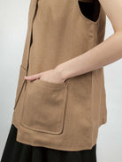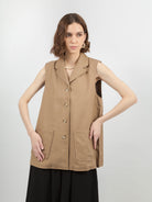 Vest wanita ini didesain dengan bahan yang nyaman saat dipakai. Terdapat empat kancing dan dua saku di bagian depan. Vest ini juga dilengkapi kain furing pada bagian dalam. Cocok untuk dikenakan pada acara formal maupun non formal.