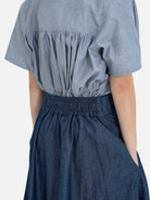 Rok panjang berbahan cotton denim yang ringan namun tetap memberikan struktur yang elegan. Dilengkapi detail pleats dan karet di bagian pinggang untuk kenyamanan ekstra. Pilihan sempurna untuk tampilan kasual yang tetap rapi dan anggun.
