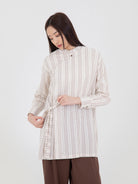 Nabila Blouse menghadirkan desain minimalis dengan sentuhan klasik melalui motif garis vertikal yang memberikan efek siluet lebih ramping. Dibuat dari 100% cotton, bahan ini terasa lembut, breathable, dan nyaman untuk aktivitas sehari-hari.