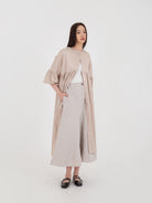 Dilengkapi dengan kancing depan minimalis, outer ini bisa dikenakan sebagai luaran terbuka atau tertutup, sesuai gaya yang diinginkan. Warna Beige yang netral mudah dipadukan dengan berbagai outfit, dari kasual hingga formal.
