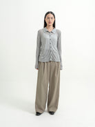 Cardigan dengan desain collar polo yang memberi kesan clean dan minimal. Materialnya ringan dan sheer sehingga memberikan tampilan layering yang soft dan effortless. Nyaman dipakai sebagai inner maupun outer tipis. Detail kancing depan membuatnya fleksibel untuk dipakai terbuka atau tertutup. Cocok dipadukan dengan trousers atau rok untuk tampilan daily yang simpel namun tetap stylish.