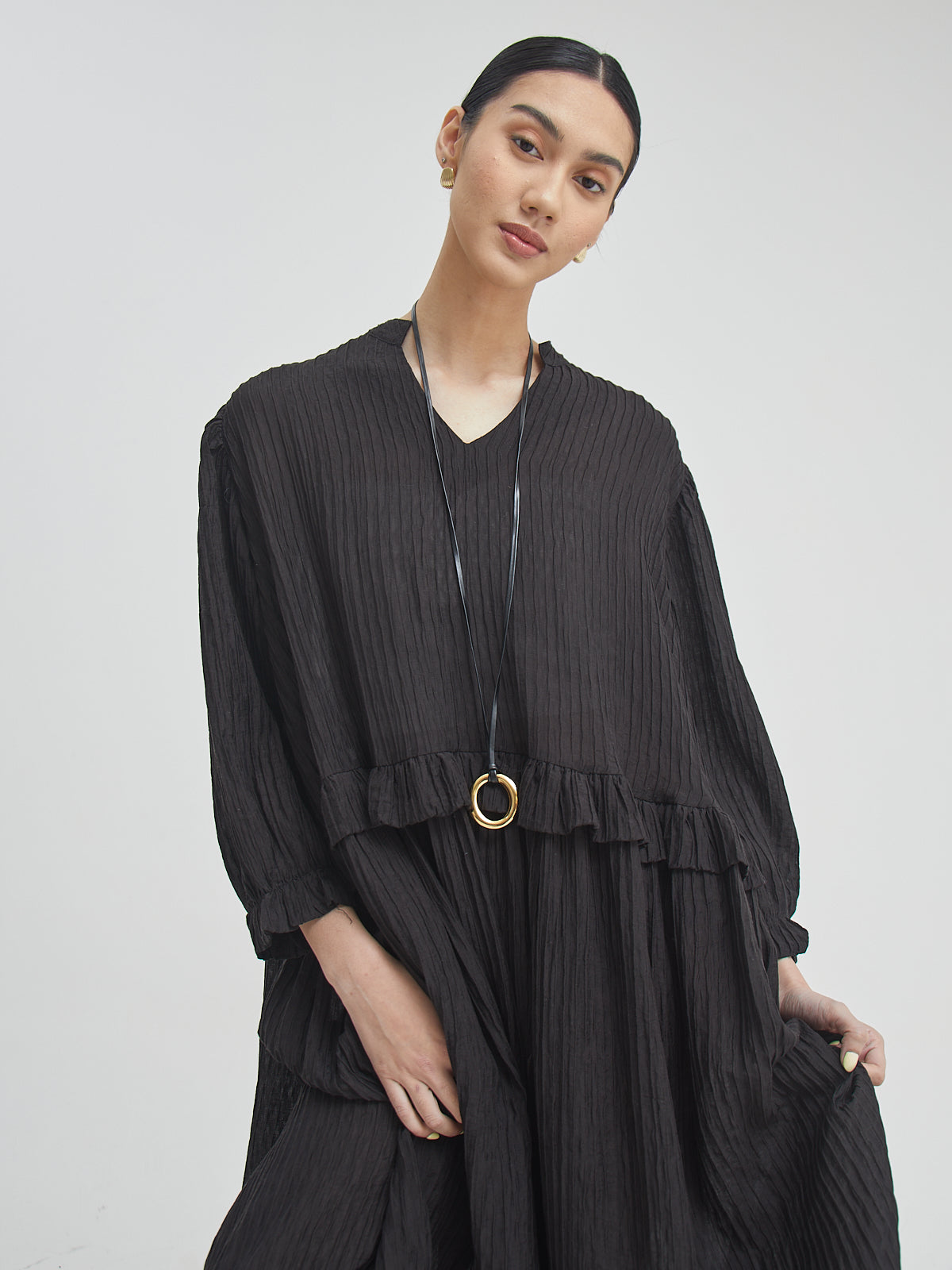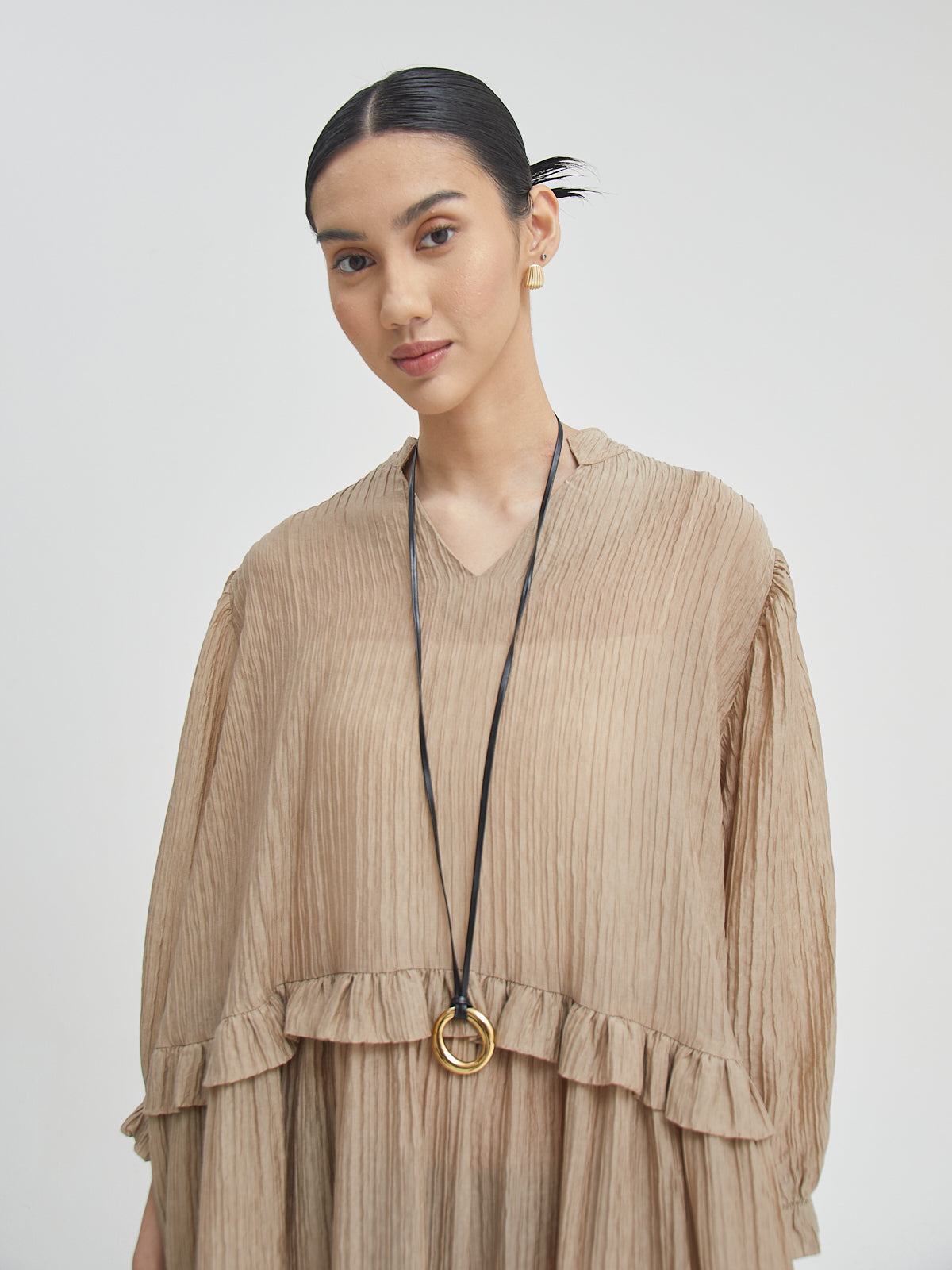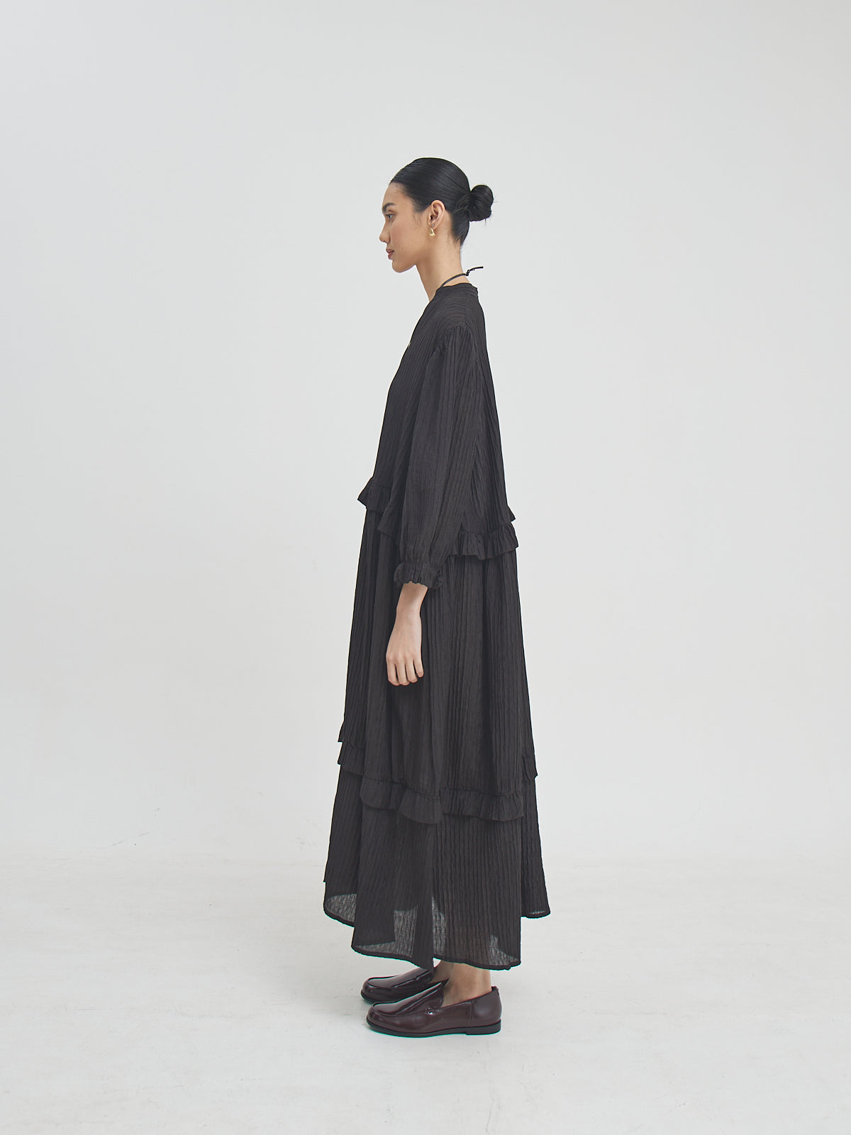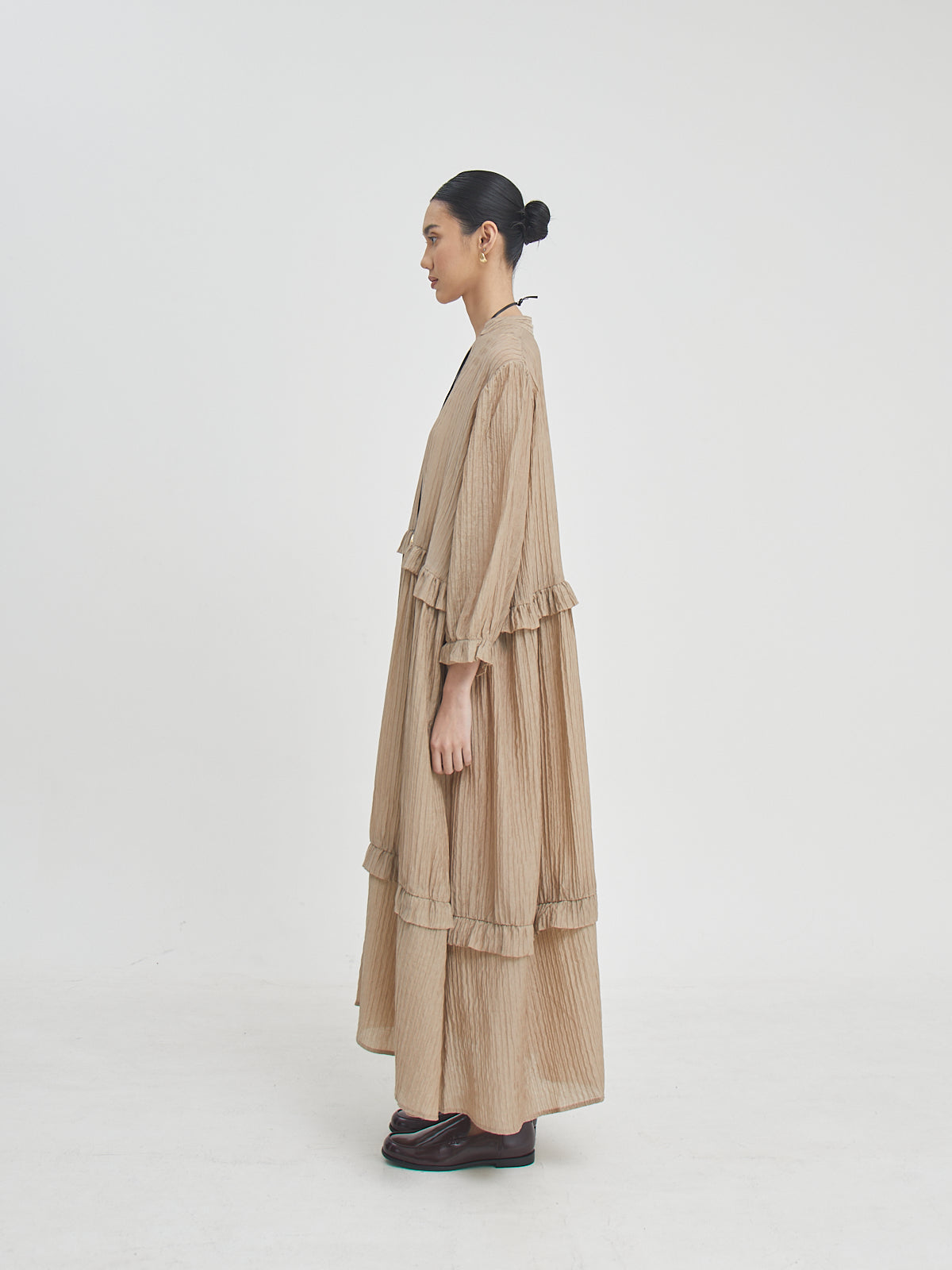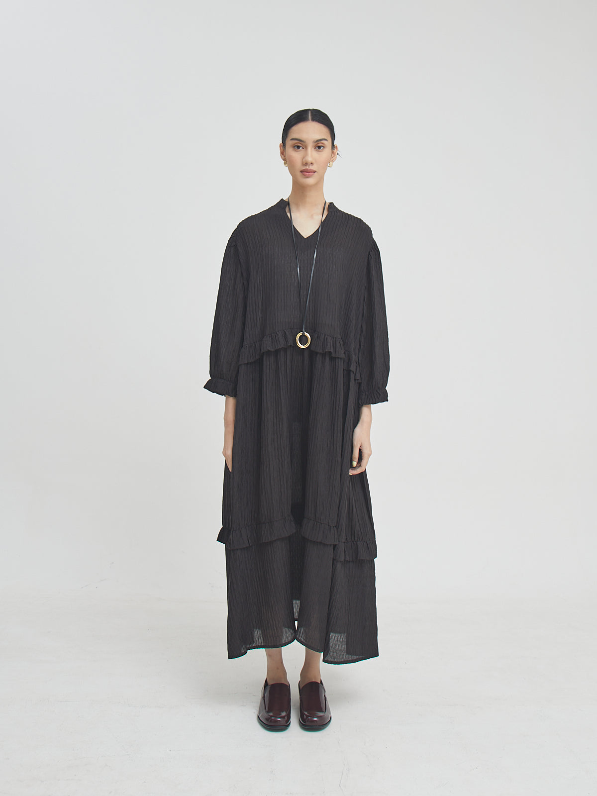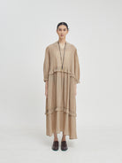 Eswari Dress adalah long dress dengan siluet loose yang memberikan kenyamanan maksimal namun tetap tampil stylish. Terbuat dari bahan Tencel blend yang lembut dan ringan, dress ini cocok untuk cuaca tropis maupun aktivitas harian. Potongannya yang panjang memberikan kesan anggun dan effortless—ideal dikenakan sendiri atau dipadukan dengan aksesori favoritmu.