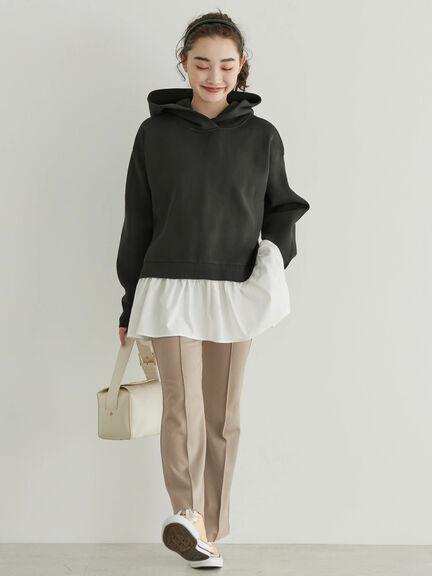 Hoodie ini terbuat dari 2 jenis bahan yang berbeda serta di desain layered sehingga menampilkan kesan yang modis saat dikenakan. Berjenis kain rajut yang halus dan ringan sangat nyaman saat dikenakan.