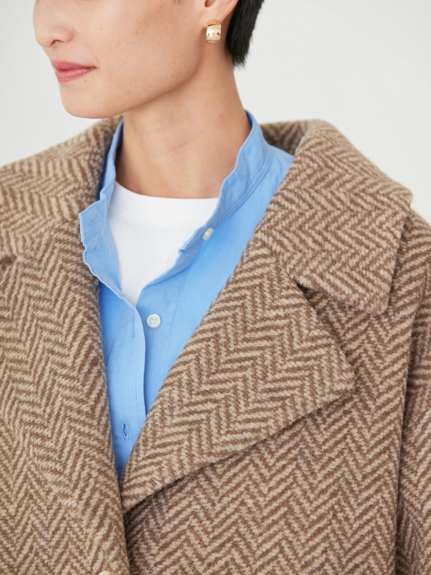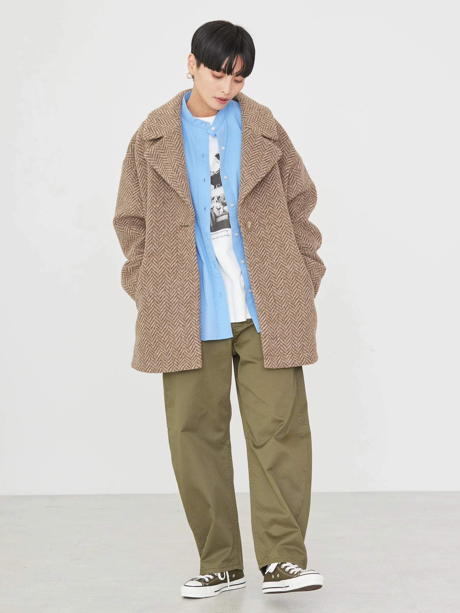 Luaran wanita ini didesain dengan kerah kemeja dan tekstur yang menarik. Terdapat dua saku di depan dan satu kancing depan. Luaran wanita ini dilapisi furing dan sangat cocok untuk musim dingin. Memiliki bahan yang halus sehingga nyaman saat dipakai.