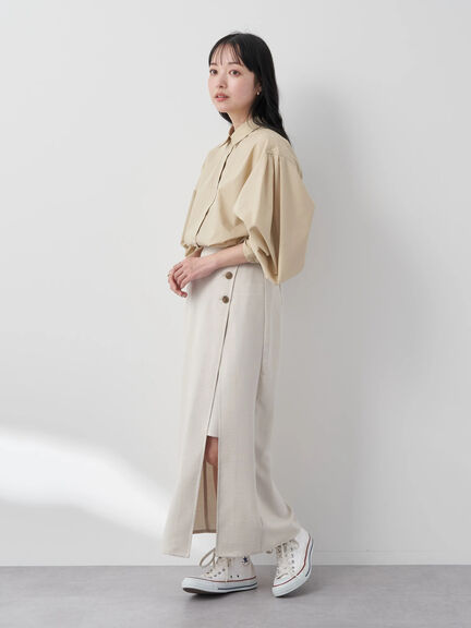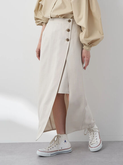 Celana rok one set ini bisa dikenakan secara terpisah antara bagian celana dan rok nya. Di desain dengan cutting I-line dan terdapat kancing pada bagian depan rok serta pada bagian belakang pinggang terdapat karet yang elastis.