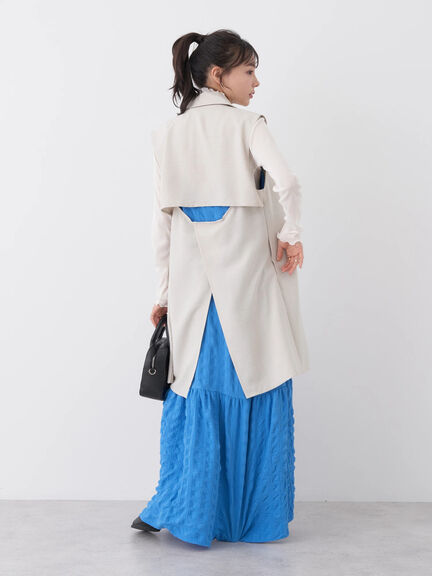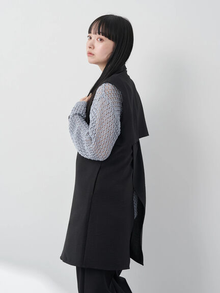 Outer ini di desain dengan model kerah blazer tanpa lengan serta terdapat detail small backless juga terdapat 1 kancing pada bagian depan. Ada saku yang berfungsi pada bagian samping, sangat mudah untuk di mix and match dengan pakaian favorit kalian!