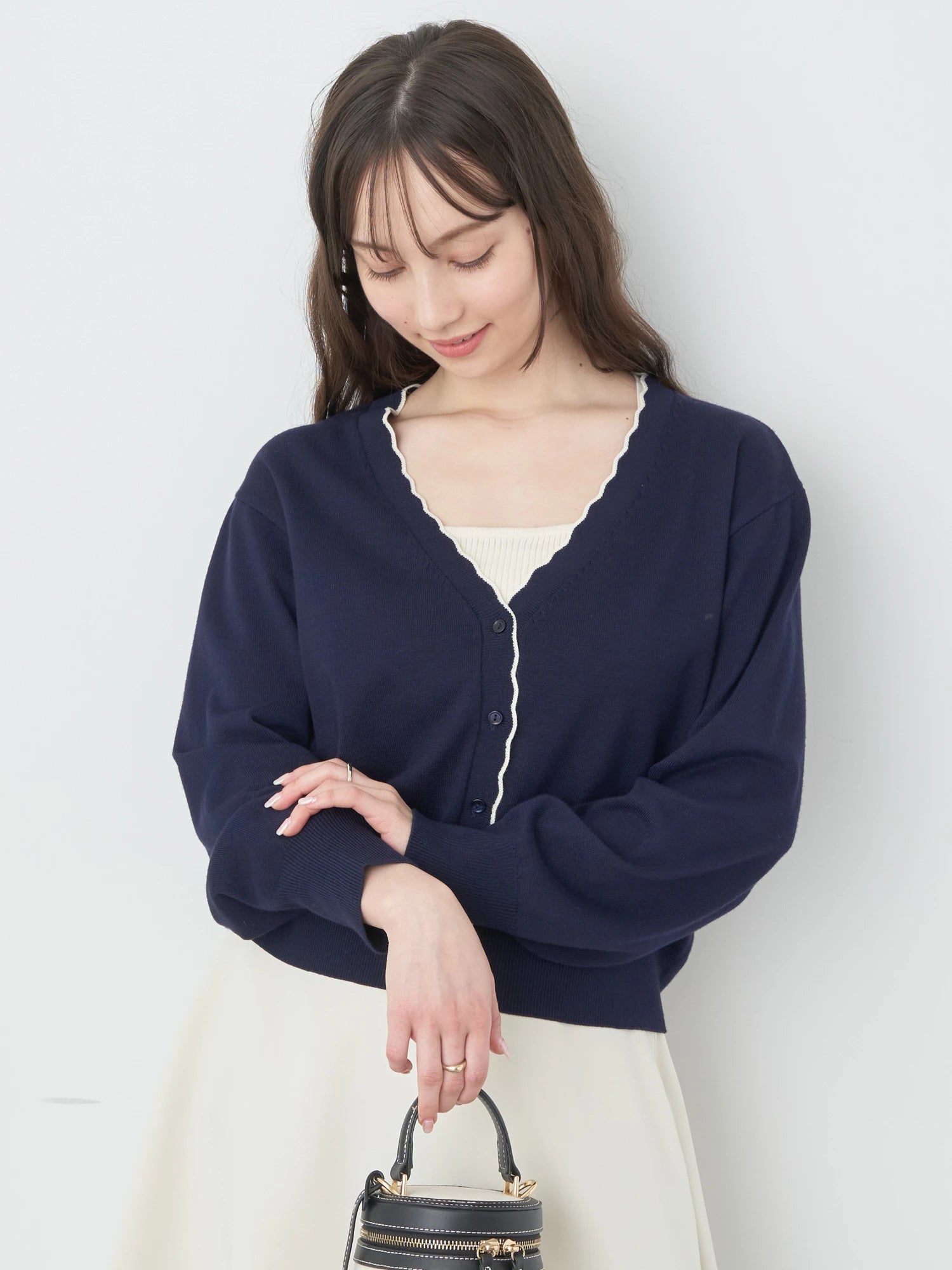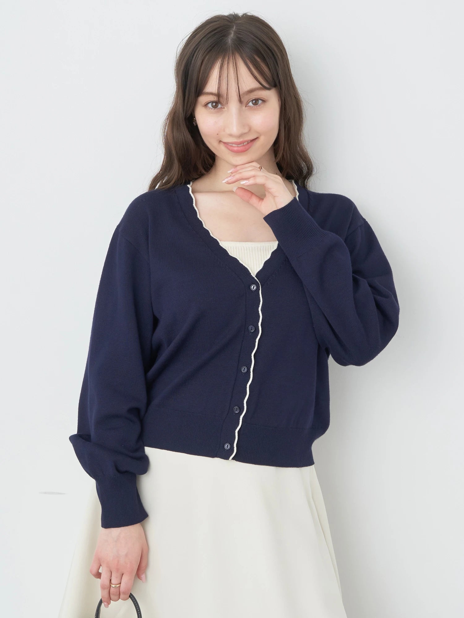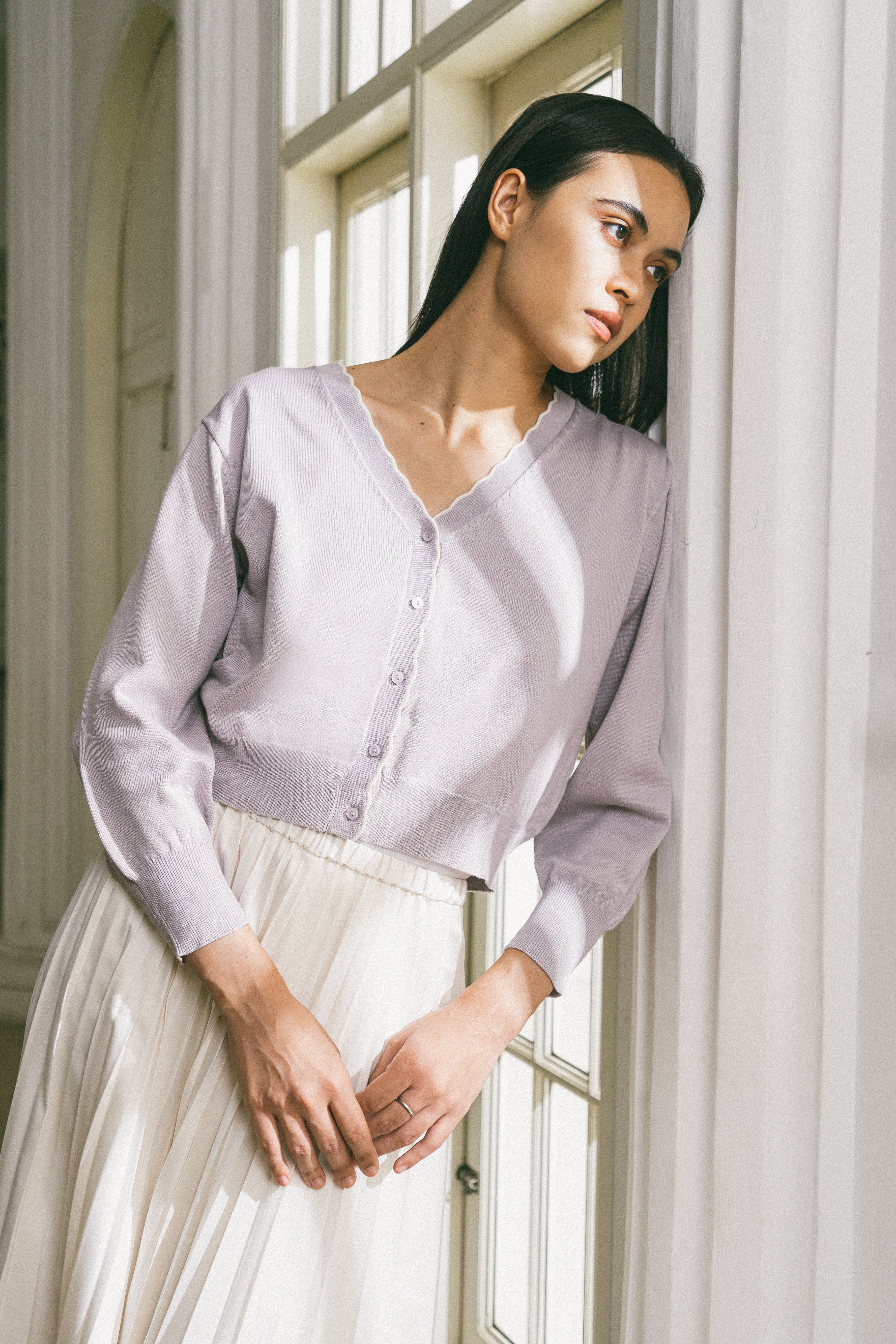 Cardigan wanita ini didesain dengan detail lining berbentuk scallop. Terdapat kancing di bagian depan. Memiliki bahan yang halus sehingga nyaman saat dipakai. Cocok untuk dikenakan pada acara formal maupun non formal.