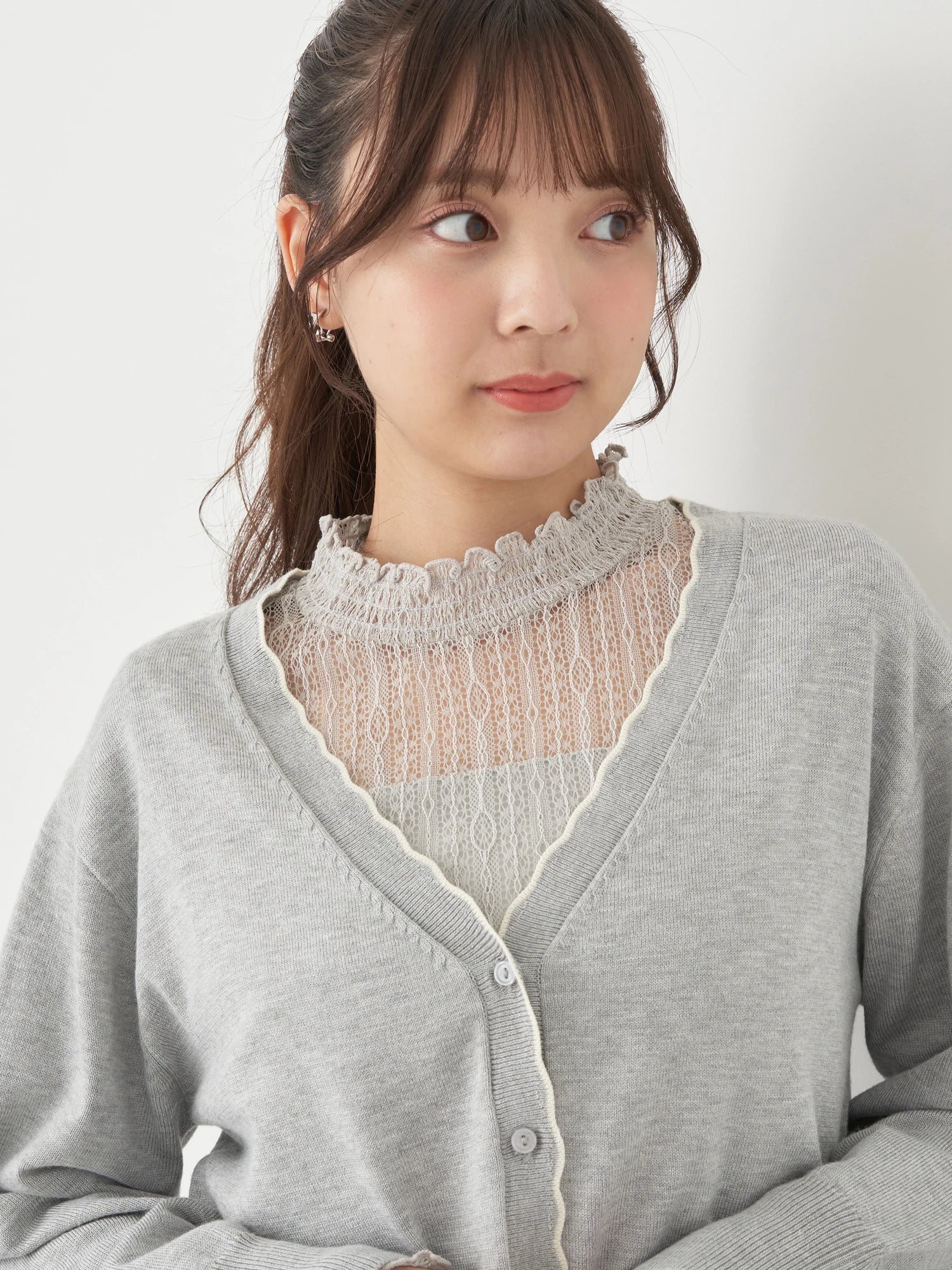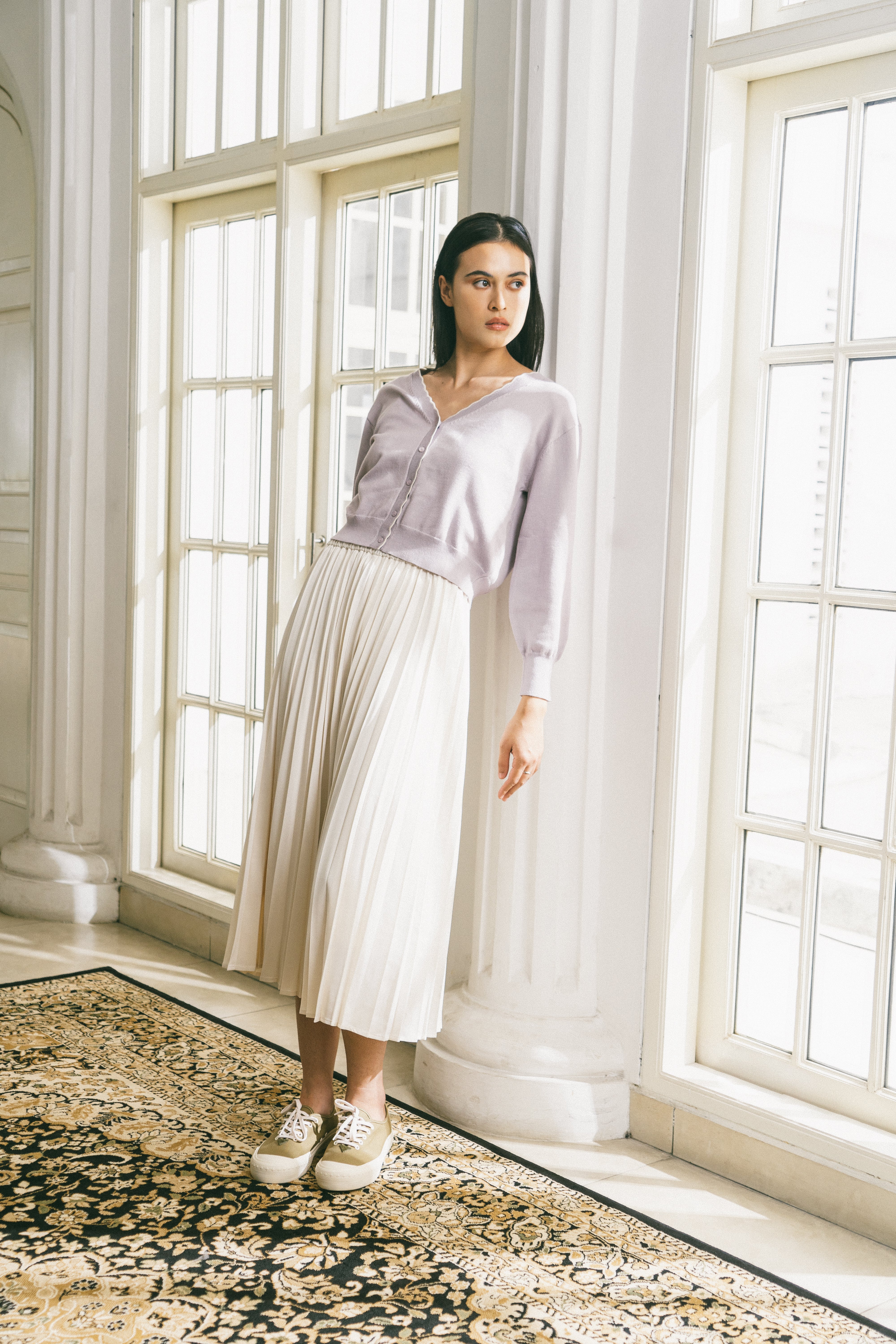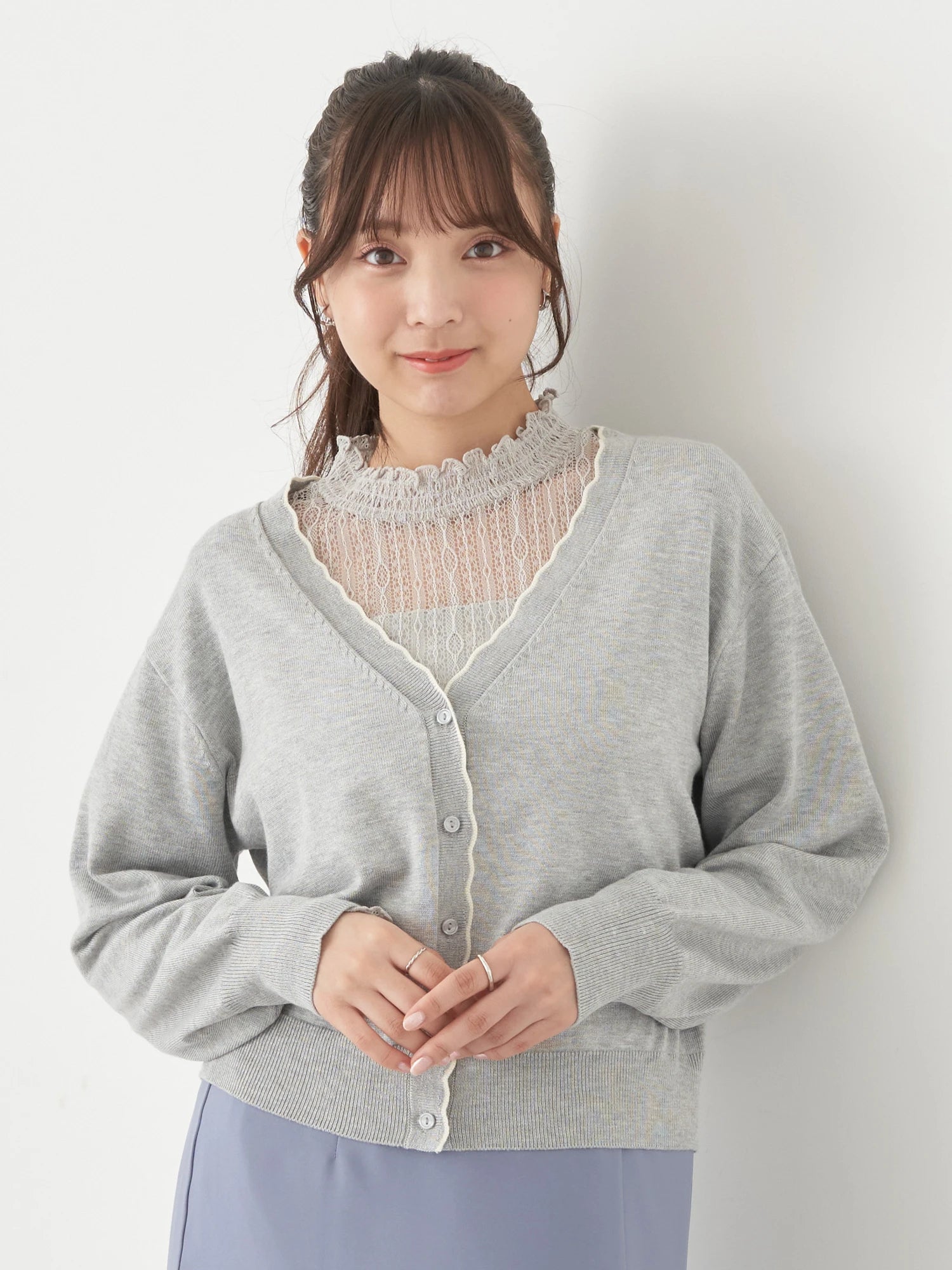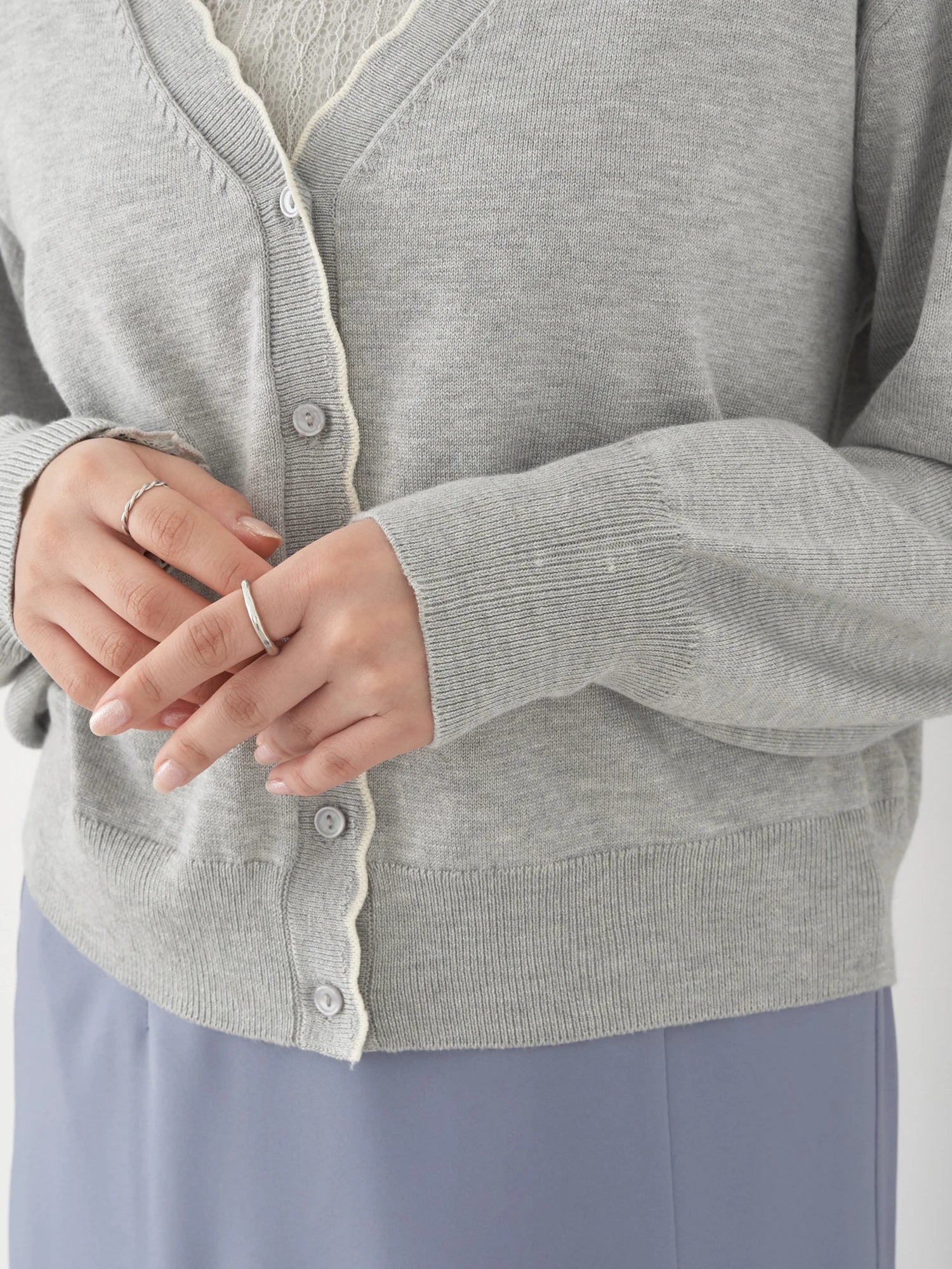 Cardigan wanita ini didesain dengan detail lining berbentuk scallop. Terdapat kancing di bagian depan. Memiliki bahan yang halus sehingga nyaman saat dipakai. Cocok untuk dikenakan pada acara formal maupun non formal.