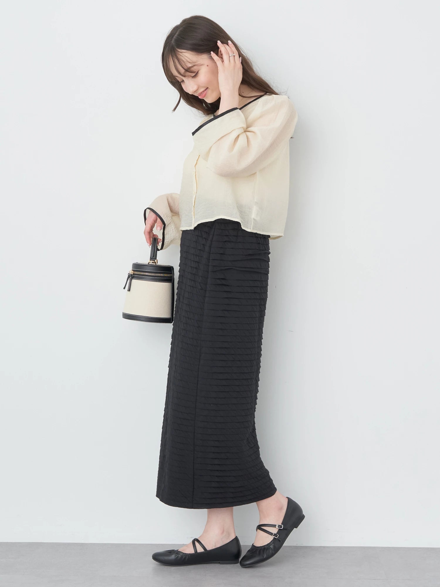 Atasan wanita lengan panjang ini didesain dengan cuttingan crop. Memiliki full kancing pada bagian depan. Terdapat lengan yang bervolume sehingga memberikan kesan feminim. Siluet tembus pandang memberikan kesan yang menarik dan elegan. Bahannya yang ringan dan halus sehingga nyaman saat dipakai. Cocok digunakan sebagai luaran ataupun sebagai atasan biasa.
