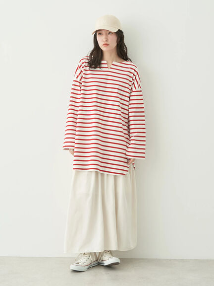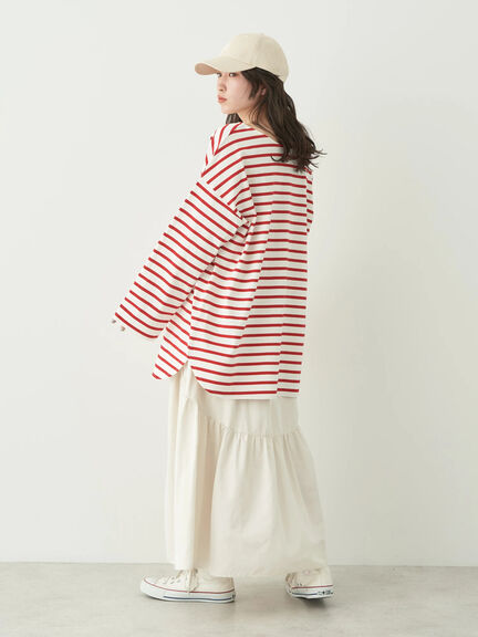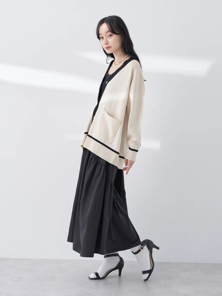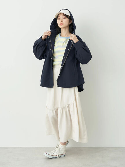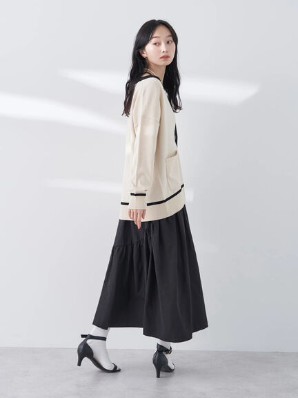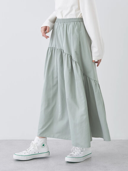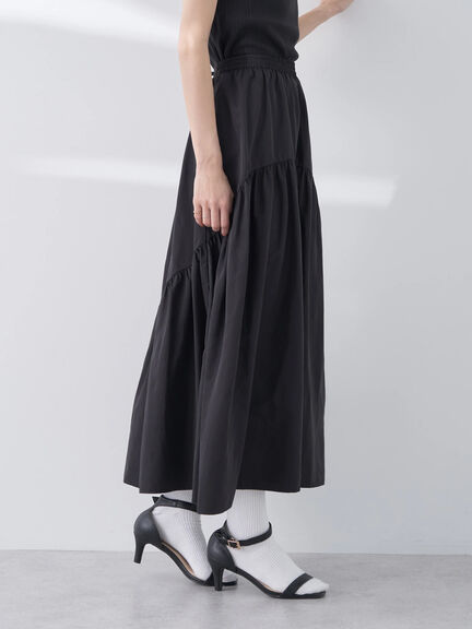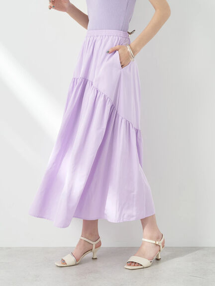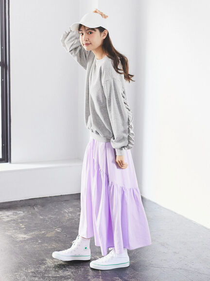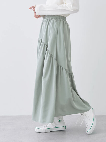 Tiered skirt ini di desain dengan bentuk oval hingga bagian belakang sehingga memberikan kesan yang unik dan cantik saat dikenakan, terdapat kain pada lapisan dalam sehingga rok ini tidak tembus pandang. Bagian pinggang sangat elastis karna full karet, serta terdapat saku pada bagian samping. Cocok dipadukan dengan atasan kemeja, blus maupun pakaian rajut.