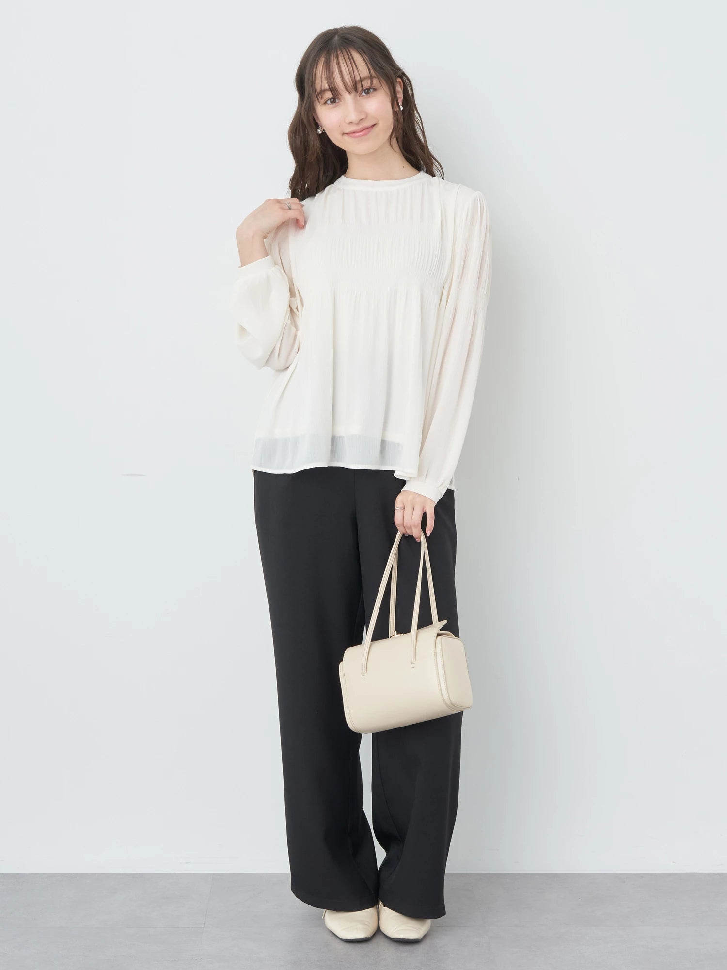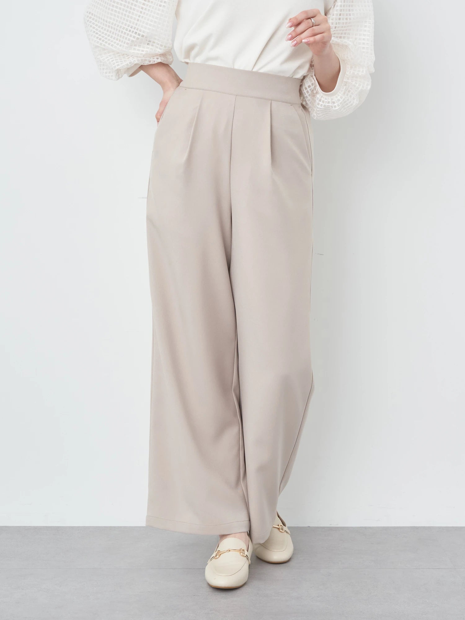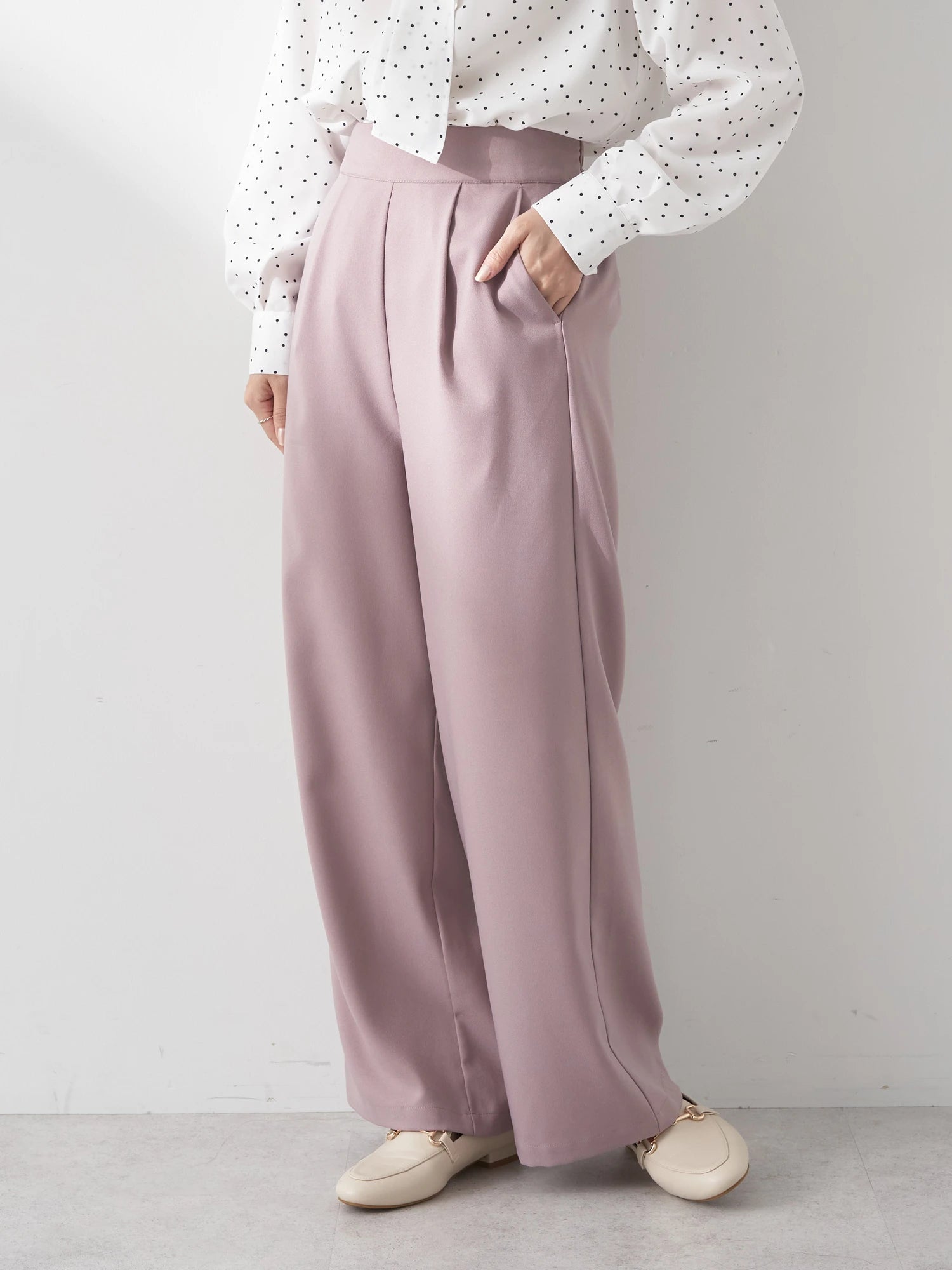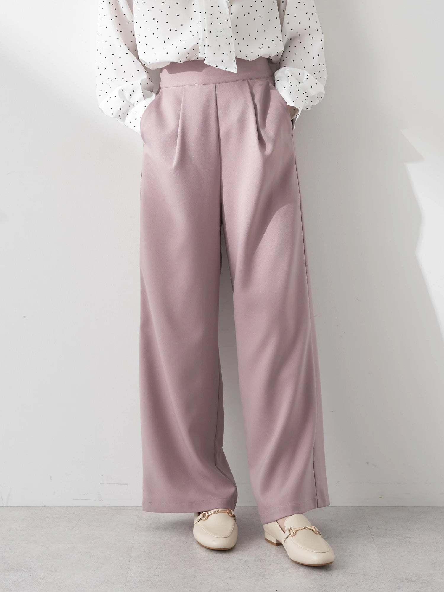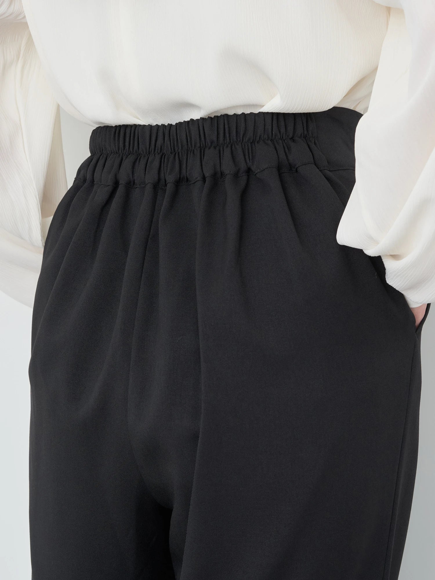 Celana wanita ini didesain dengan siluet sedikit melebar di bagian bawah. Terdapat karet pada bagian belakang dan saku di sisi celana. Memiliki tekstur kain yang halus sehingga sangat nyaman saat dikenakan. Detail lipitan membuat celana terlihat elegan. Cocok untuk dipakai acara formal maupun non formal.