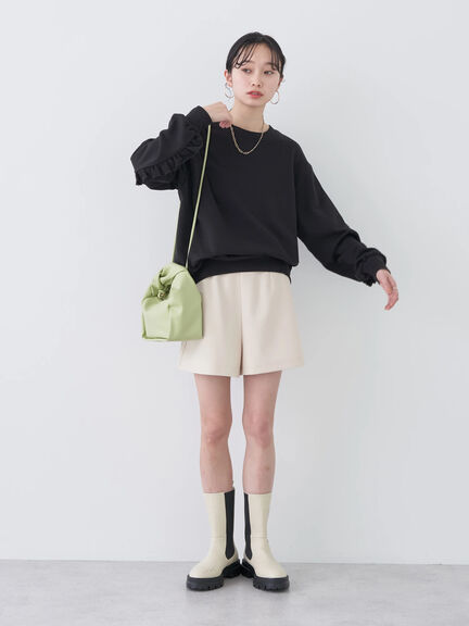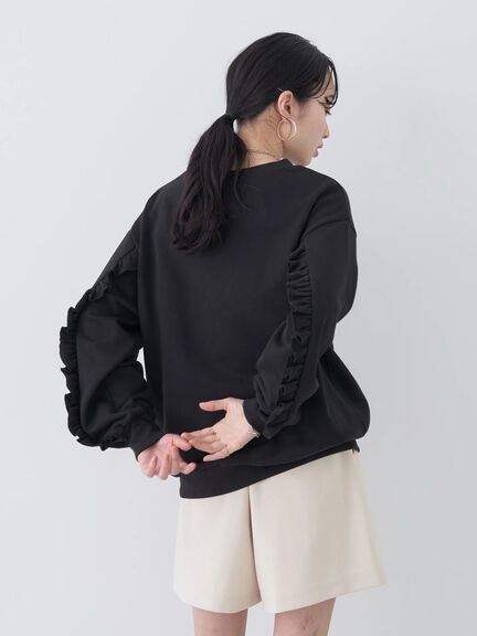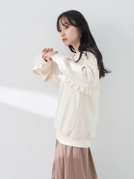 Atasan wanita ini di desain dengan model kerah bulat serta terdapat aksen frill pada bagian lengan yang memberikan kesan feminin. Terbuat dari bahan yang halus dan nyaman untuk dikenakan sehari hari.
