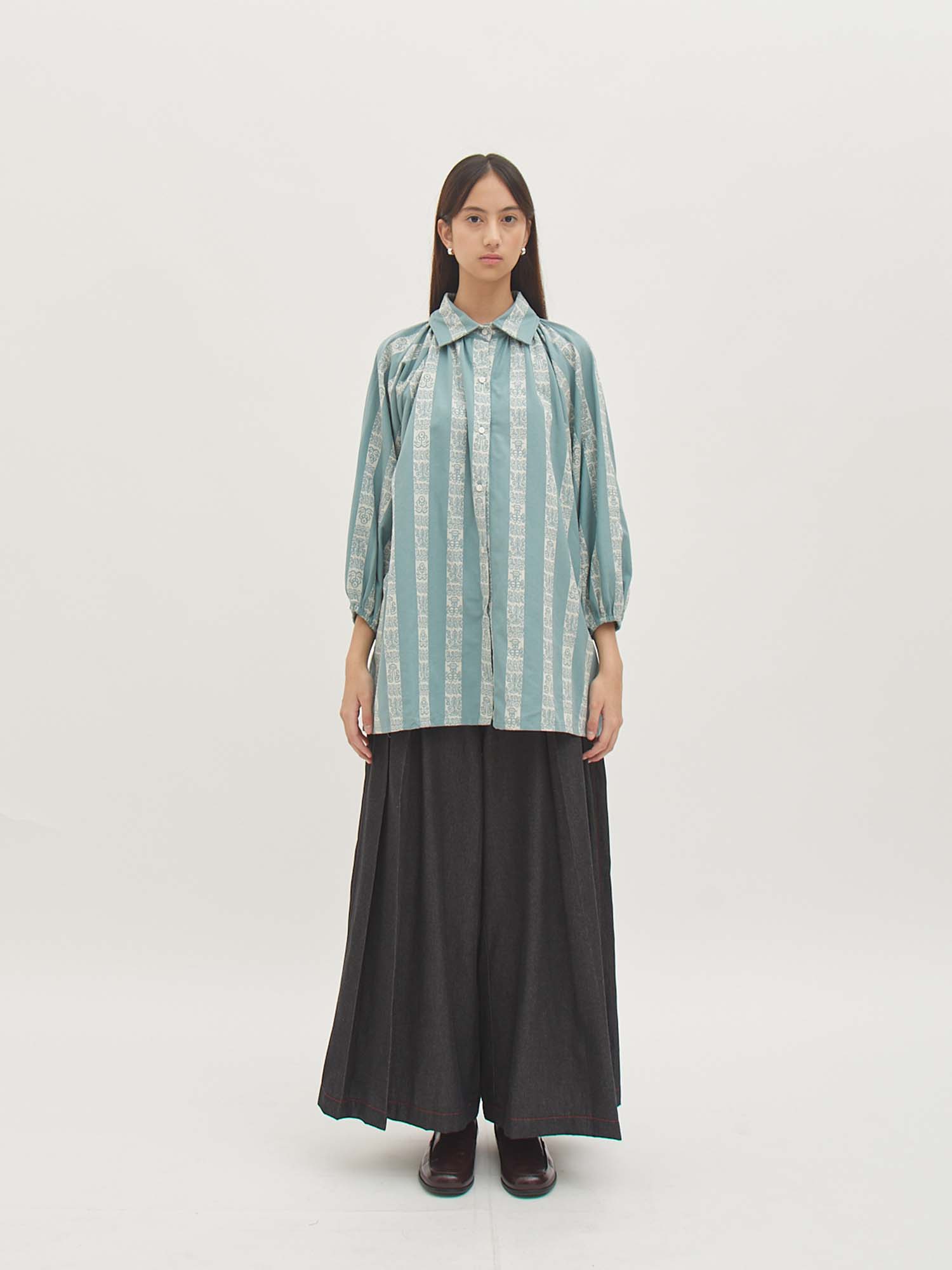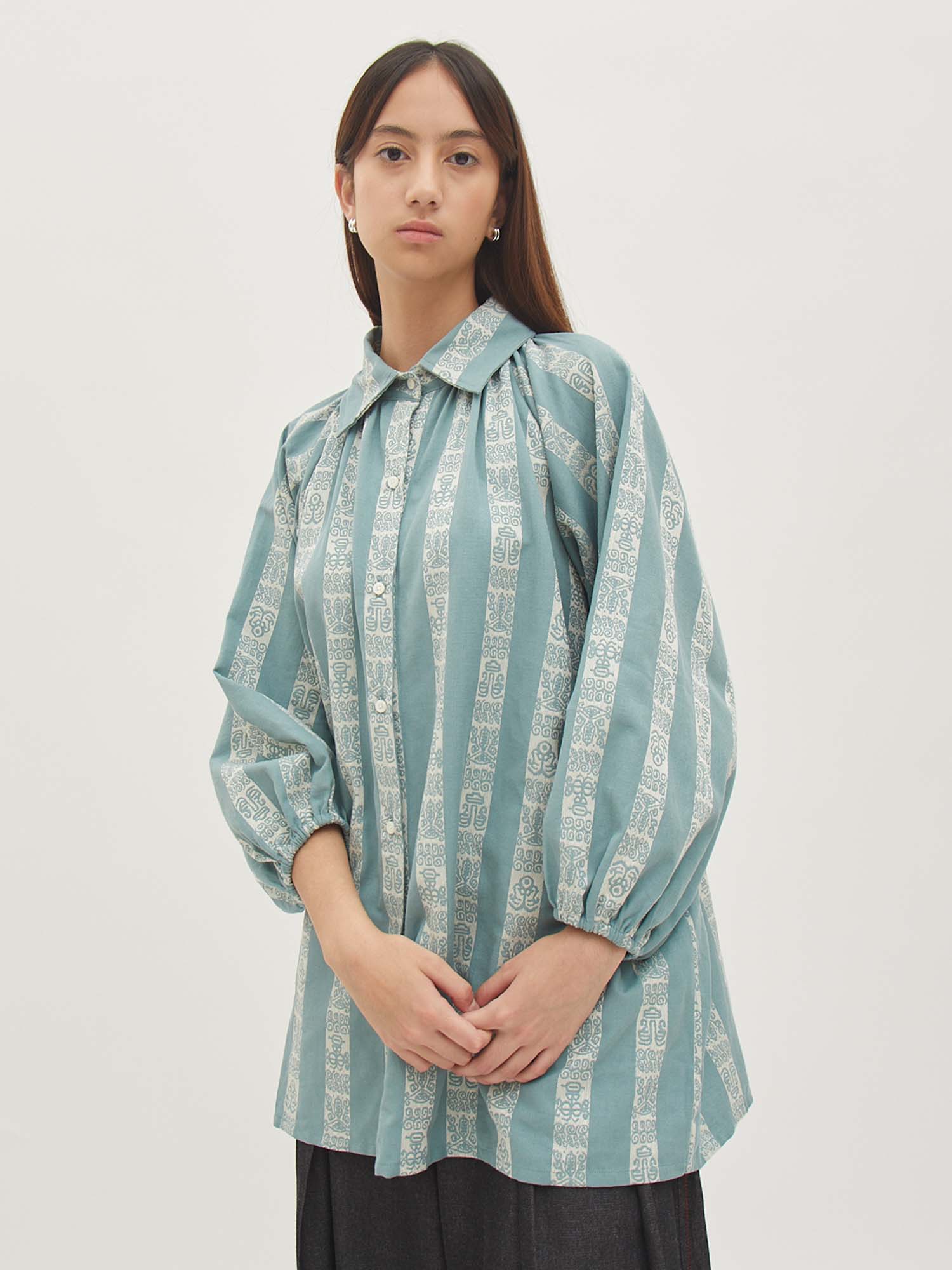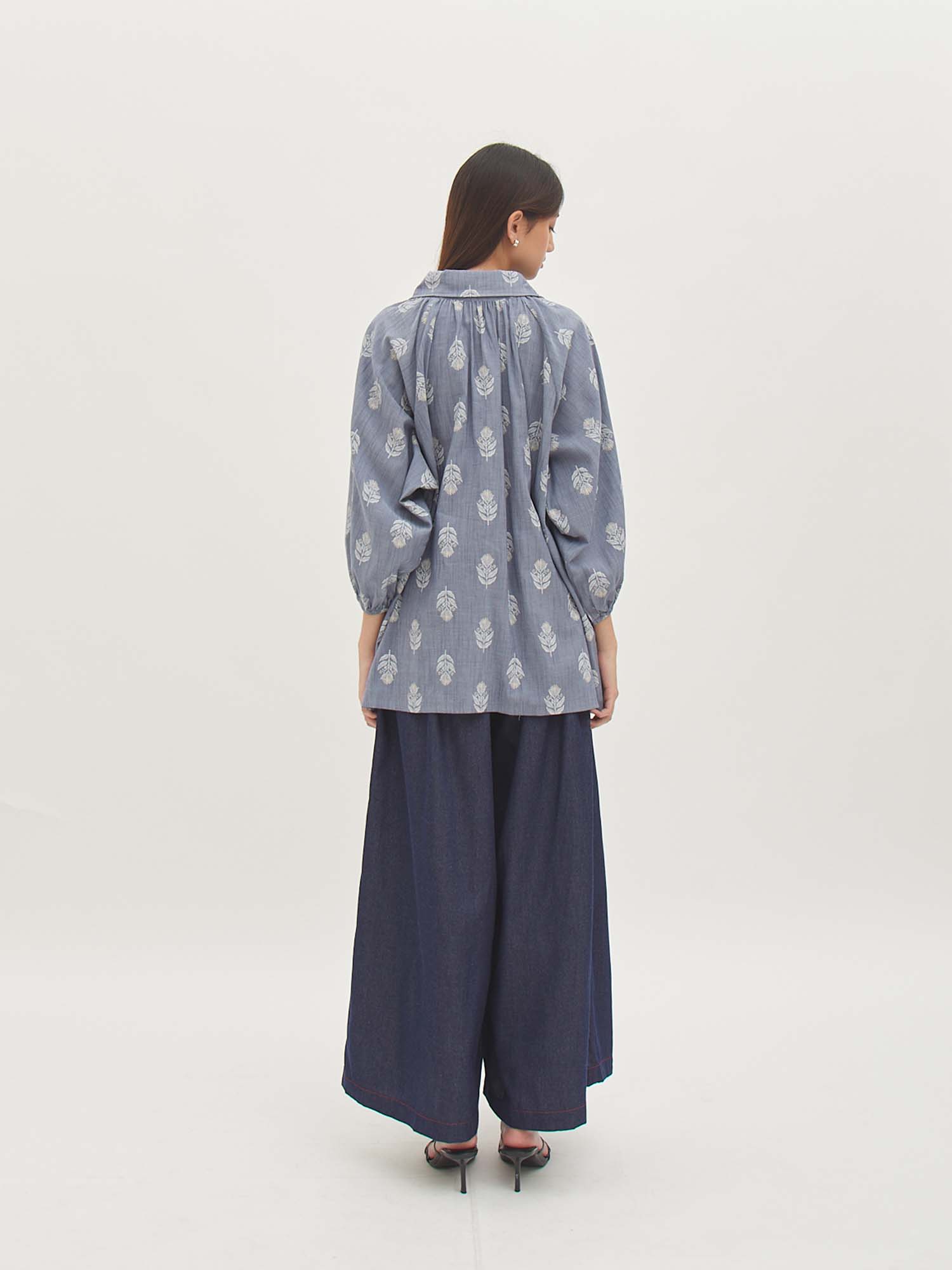 Kemeja longgar bermotif botanical dengan nuansa lembut dan potongan relaxed fit. Dilengkapi detail kerutan di bagian punggung yang memberikan efek flowy dan elegan. Lengan raglan menambah kenyamanan serta memberi ruang gerak lebih bebas. Cocok digunakan sebagai atasan santai sehari-hari maupun untuk layering.