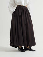 Rok panjang dengan siluet balloon yang memberikan tampilan flowy dan modern. Dilengkapi karet di pinggang untuk kenyamanan maksimal serta detail saku samping yang fungsional. Cocok untuk daily wear maupun tampilan yang lebih elevated dengan atasan favoritmu.