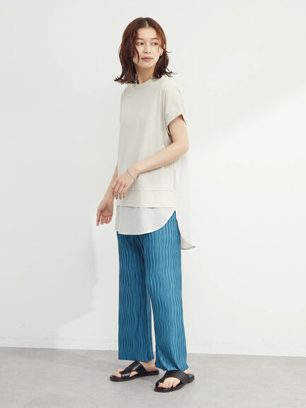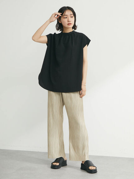 Celana kulot wanita ini di desain dengan model wave pleats dan full karet pada pinggang.