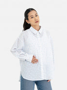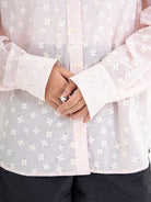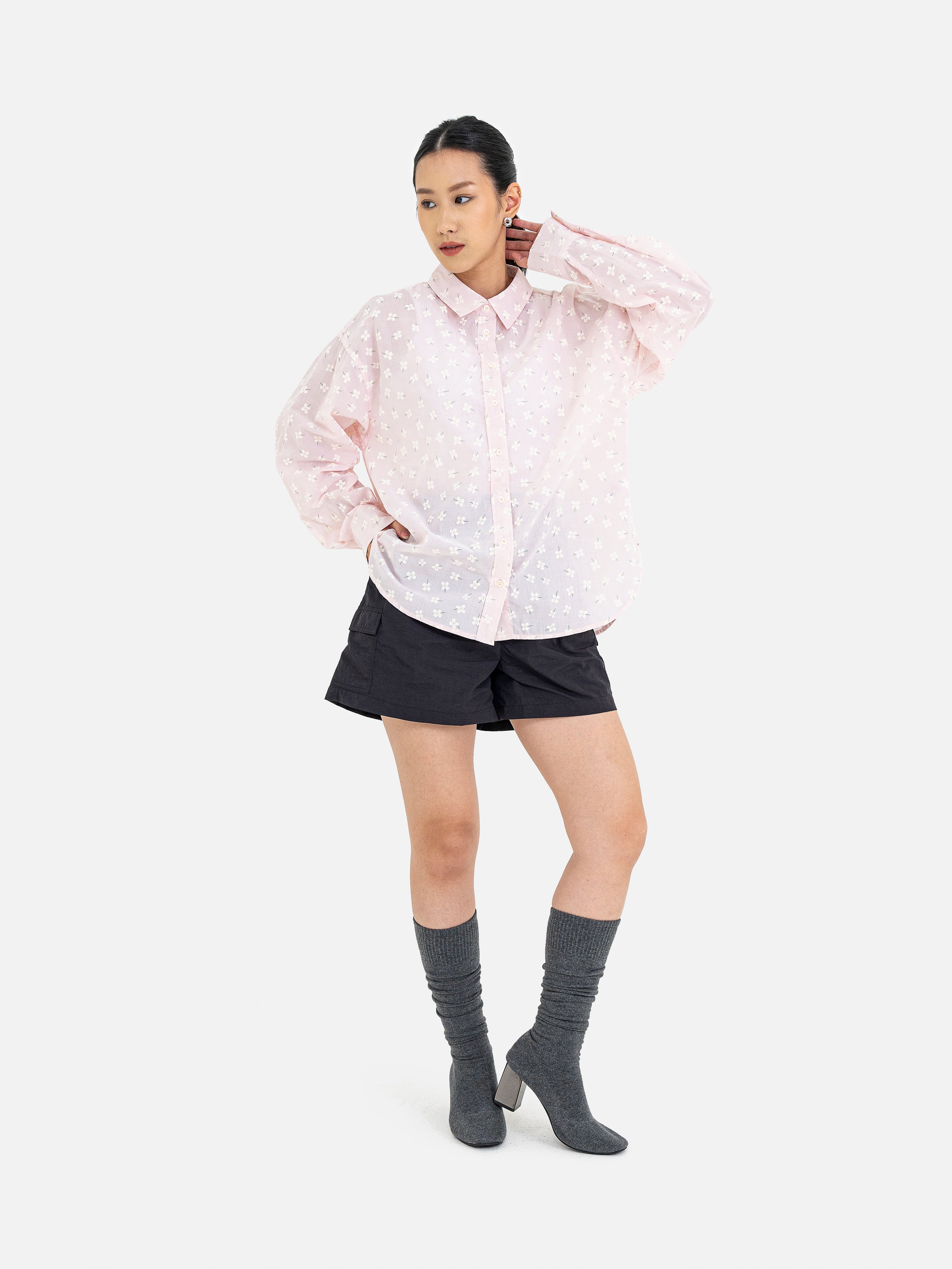 Tampil manis dengan kemeja motif bertekstur bunga yang memberikan kesan segar dan feminin. Desainnya yang simpel namun berkarakter membuatnya cocok dipadukan dengan berbagai gaya, mulai dari denim hingga kasual harian.