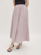 Rok panjang dengan siluet flowy dan motif kotak yang timeless, memberikan tampilan kasual yang rapi dan mudah dipadukan. Desain pinggang karet membuatnya nyaman dan fleksibel saat dikenakan sepanjang hari. Cocok digunakan untuk aktivitas harian maupun tampilan santai dengan sentuhan klasik.