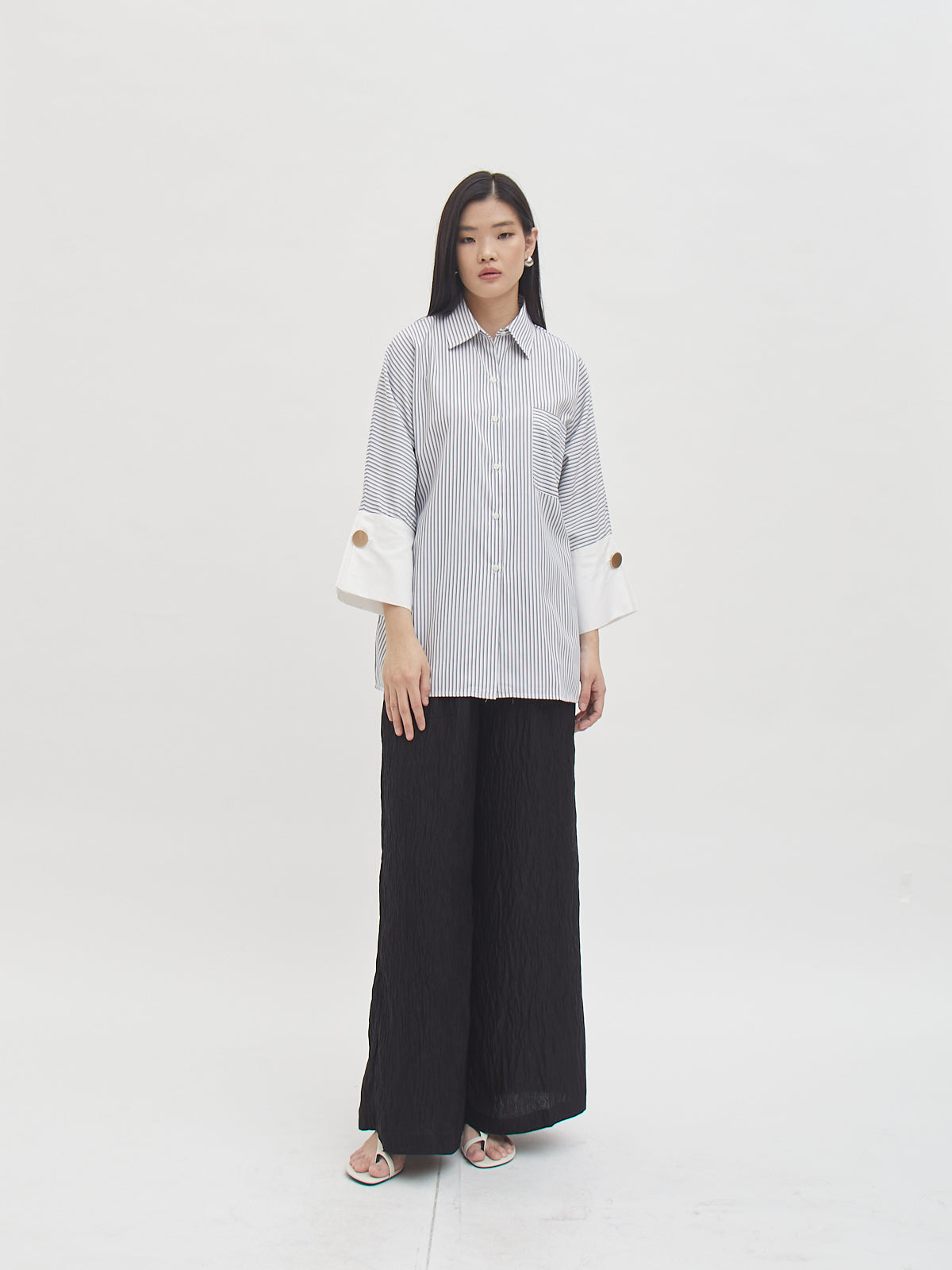Tampil standout dengan Leela Shirt yang menggabungkan siluet klasik dengan detail big cuff kontras dan aksen kancing besar. Potongannya loose, membuatmu tetap nyaman dan effortless saat dipakai seharian.
