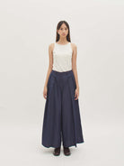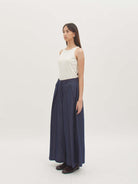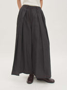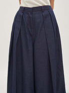 Celana denim bersiluet lebar yang memberikan statement bold namun tetap nyaman dipakai sepanjang hari. Detail pleats di bagian depan menghadirkan volume ekstra dan sentuhan modern yang edgy. Cocok untuk tampilan kasual maupun semi-formal, mudah dipadukan dengan berbagai jenis atasan.
