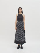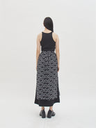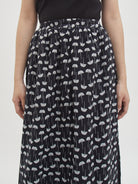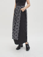 Rok layer unik dengan siluet two-tone yang memberi kesan modern dan edgy. Lapisan luar bermotif kontras dengan bagian dalam polos berpotongan panjang, memberikan efek visual yang dinamis dan menarik. Dilengkapi waistband elastis yang nyaman dipakai dan cocok untuk berbagai ukuran tubuh.