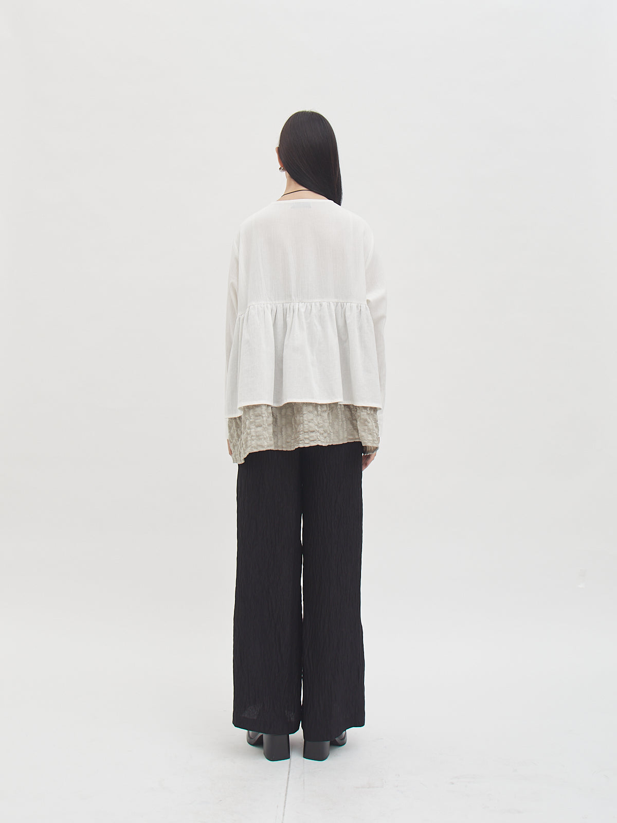 Rifqa Layer Shirt tampil dengan desain layering yang unik, menciptakan efek bertumpuk yang memberi kesan kasual namun tetap rapi. Potongan loose-nya memberikan kenyamanan ekstra dan cocok dipadukan dengan berbagai gaya, baik untuk tampilan santai maupun formal.