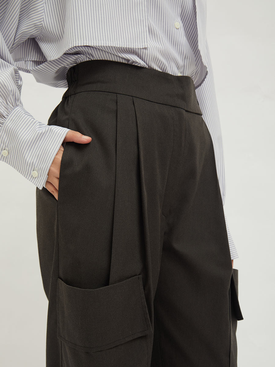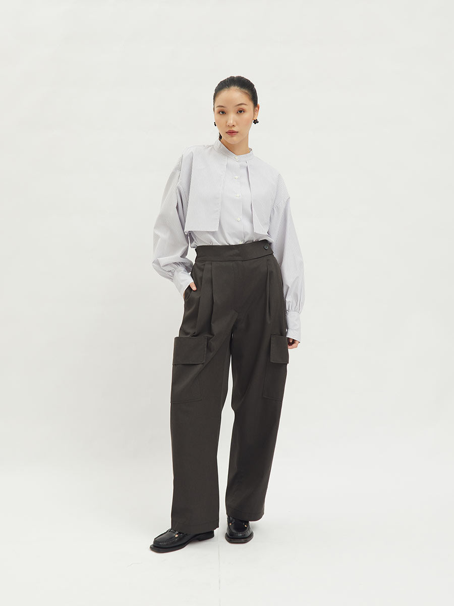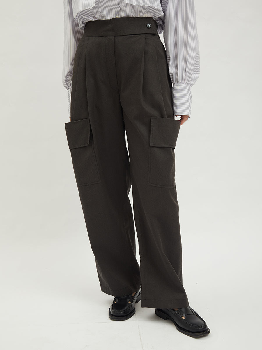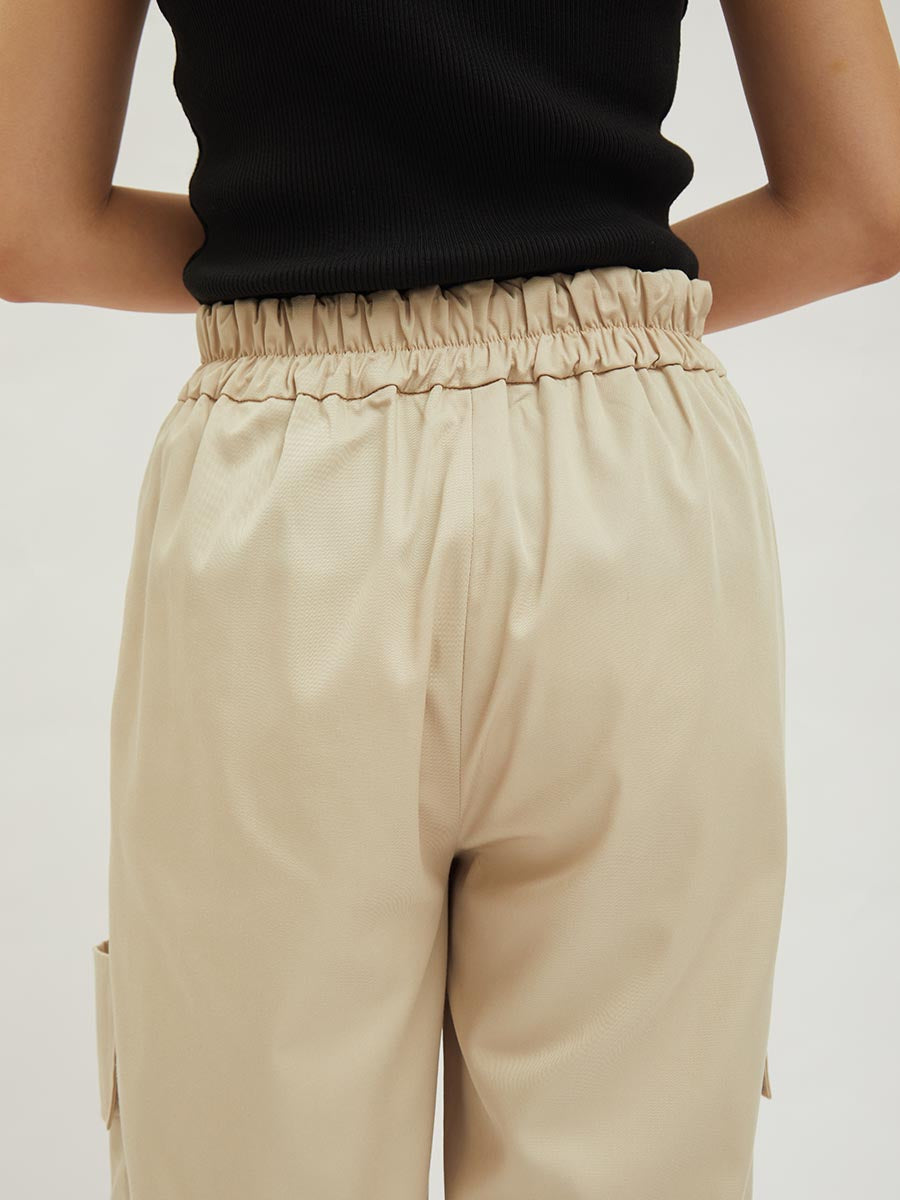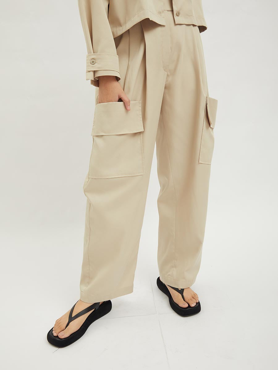 Celana panjang wanita ini terbuat dari bahan Cotton Drill. Didesain dengan siluet yang lebar. Terdapat karet di bagian pinggang yang dapat disesuaikan dan dua saku di sisi samping celana. Memiliki penutup kancing menyerupai ban pinggang untuk menambah kesan feminim. Cocok dikenakan untuk acara formal maupun non formal, sangat nyaman untuk dikenakan sehari-hari.
