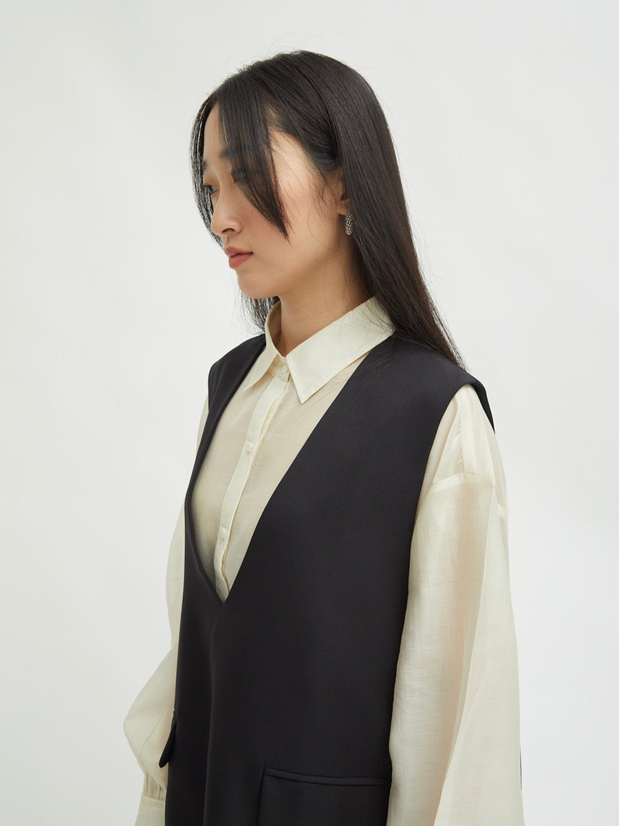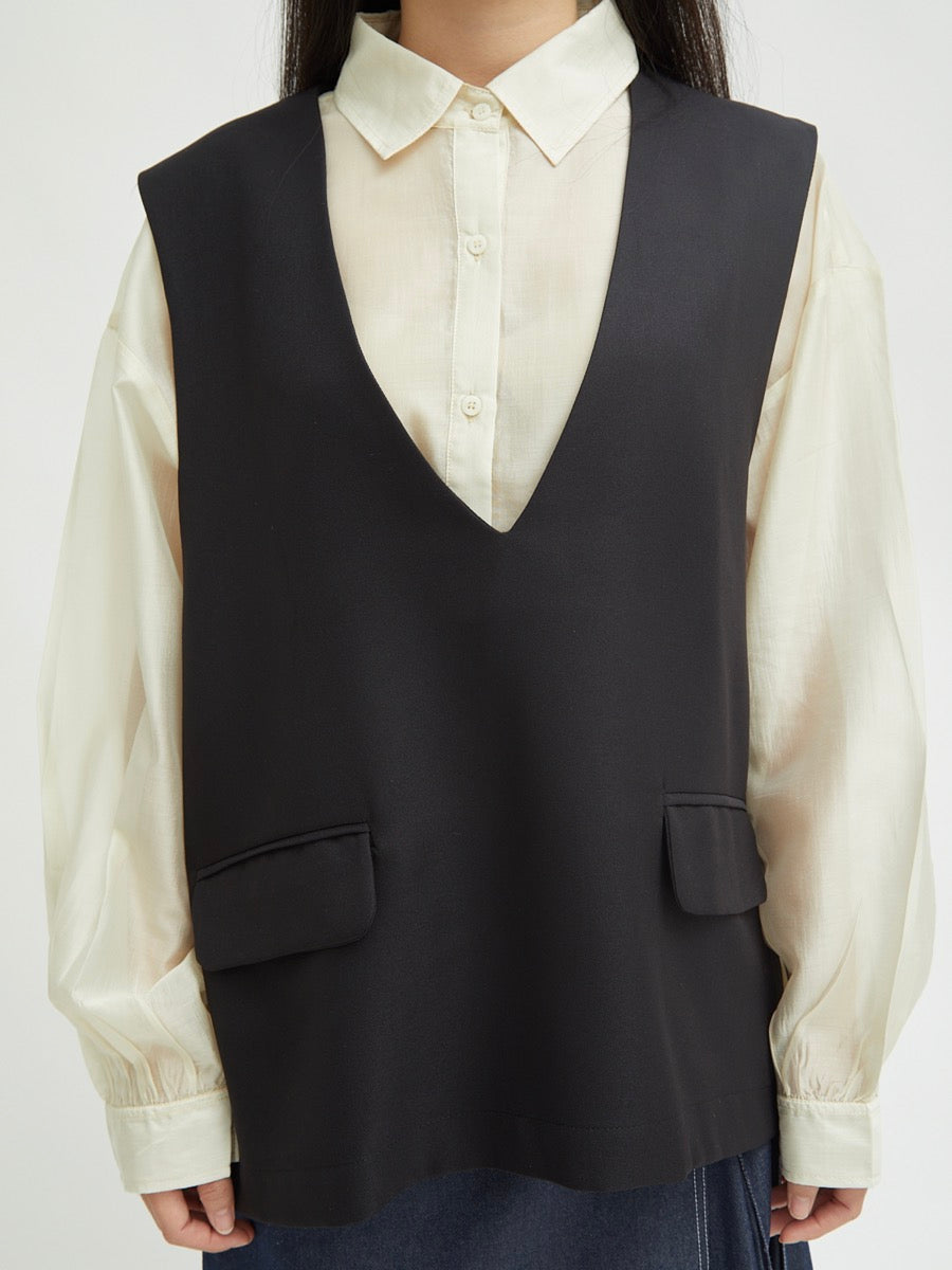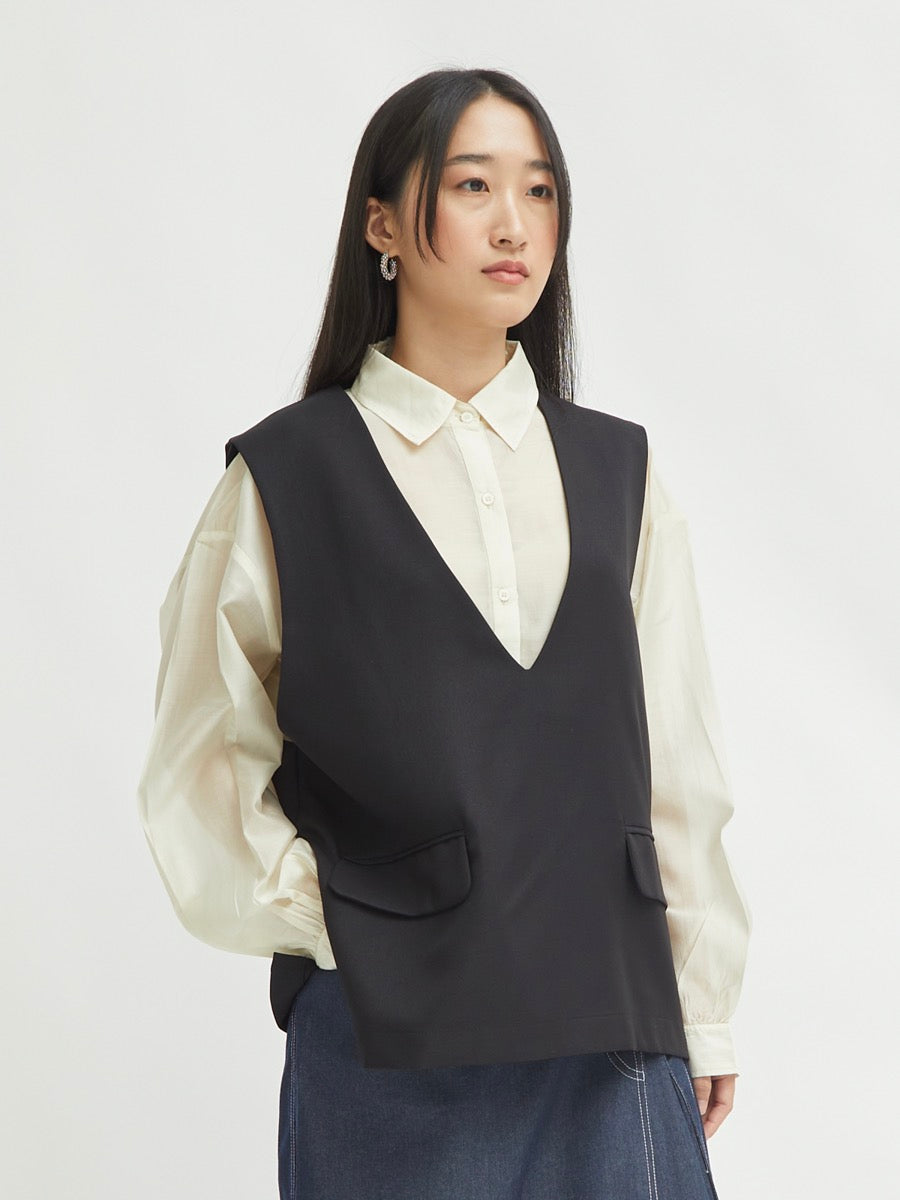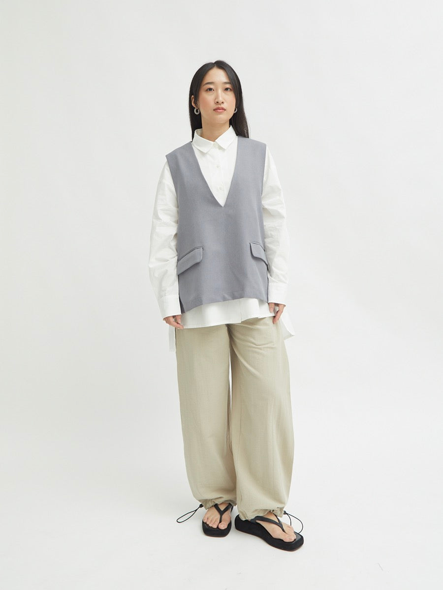 Rompi wanita tanpa lengan ini didesain dengan leher V-neck. Terdapat dua saku di bagian depan. Bahannya halus dan ringan sehingga nyaman saat dipakai. Cocok dikombinasikan dengan kemeja sebagai dalaman rompi. Dapat untuk dipakai acara formal maupun non formal.