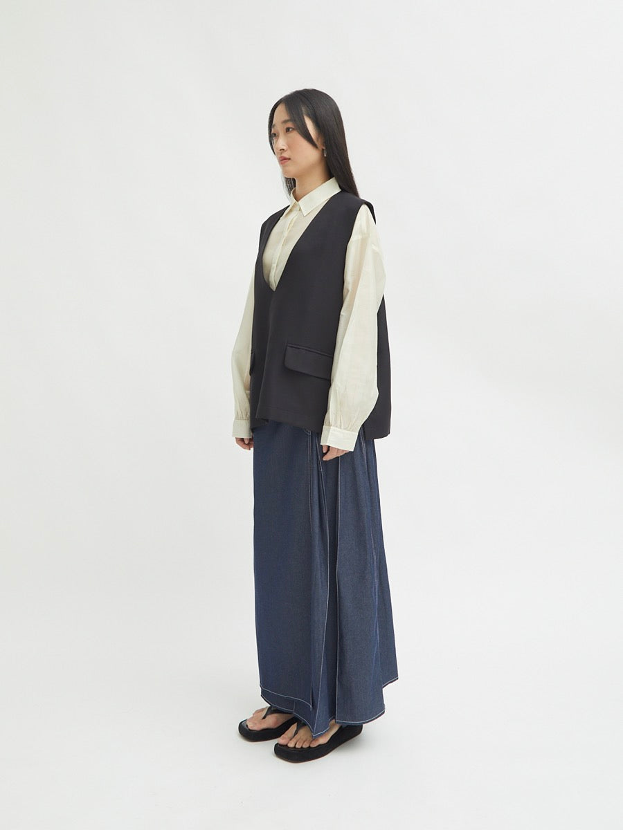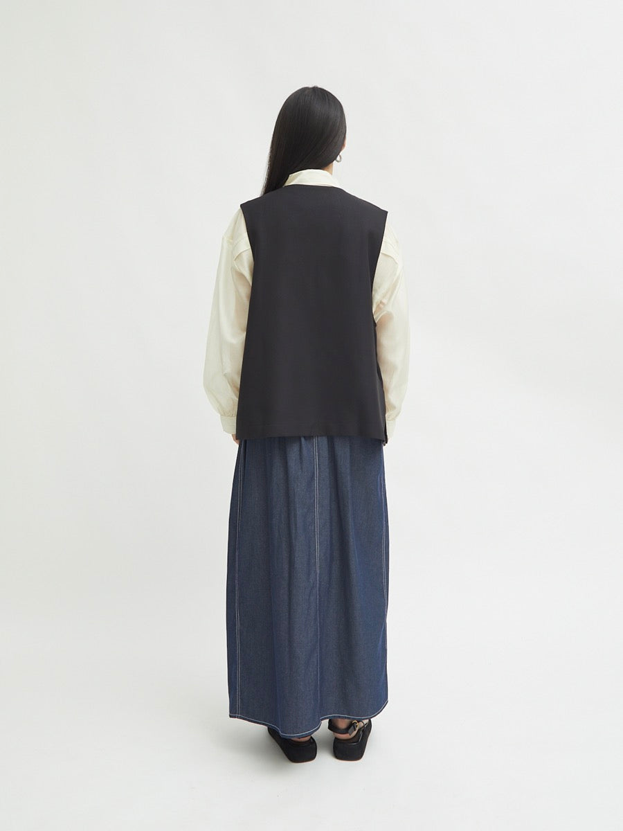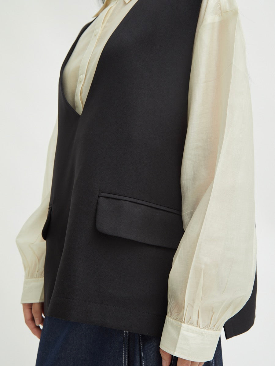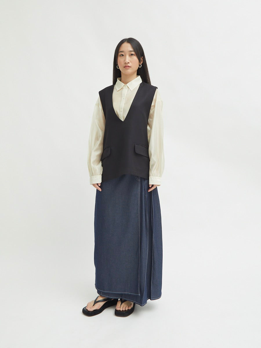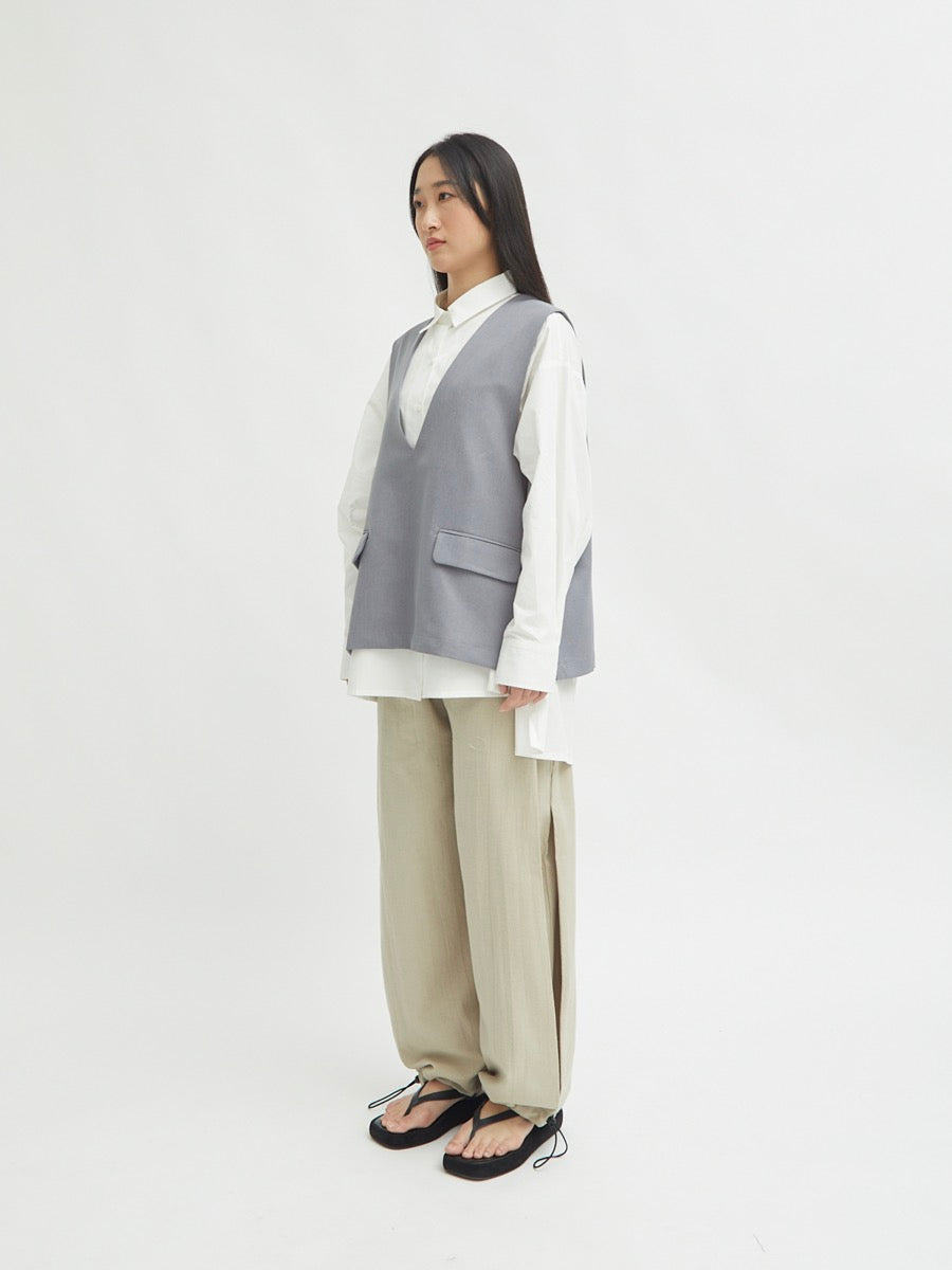 Rompi wanita tanpa lengan ini didesain dengan leher V-neck. Terdapat dua saku di bagian depan. Bahannya halus dan ringan sehingga nyaman saat dipakai. Cocok dikombinasikan dengan kemeja sebagai dalaman rompi. Dapat untuk dipakai acara formal maupun non formal.