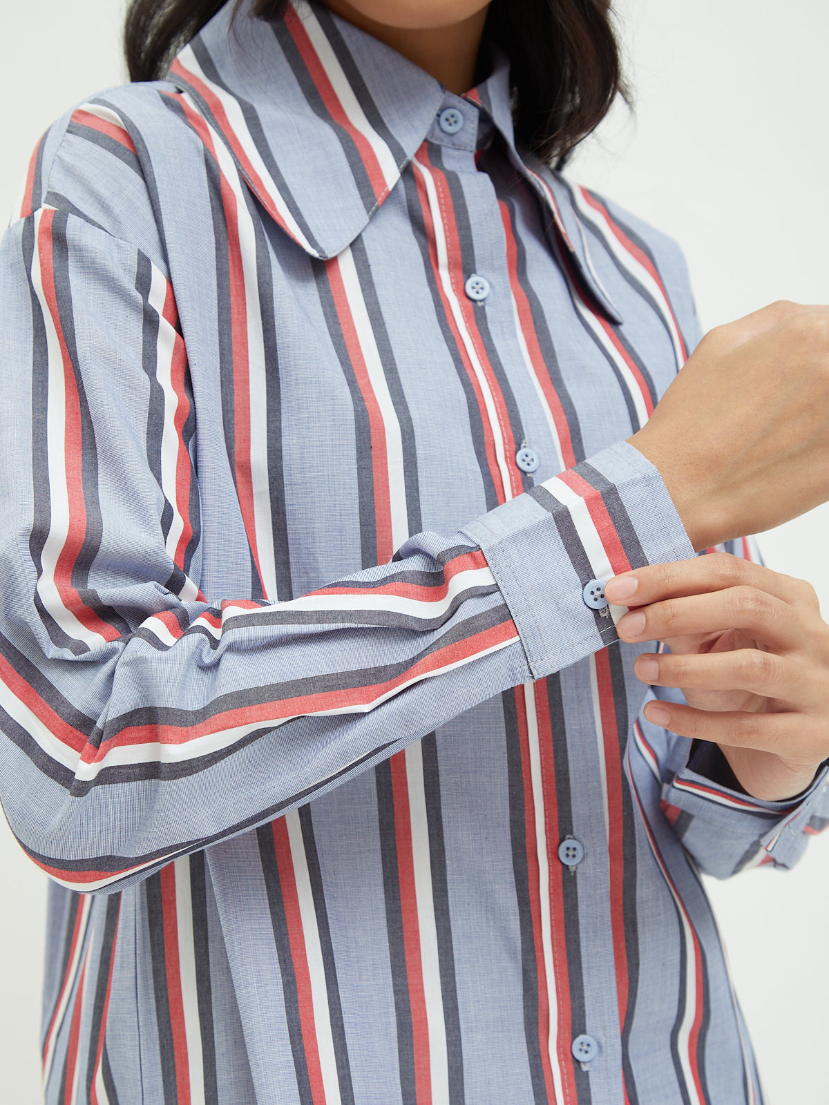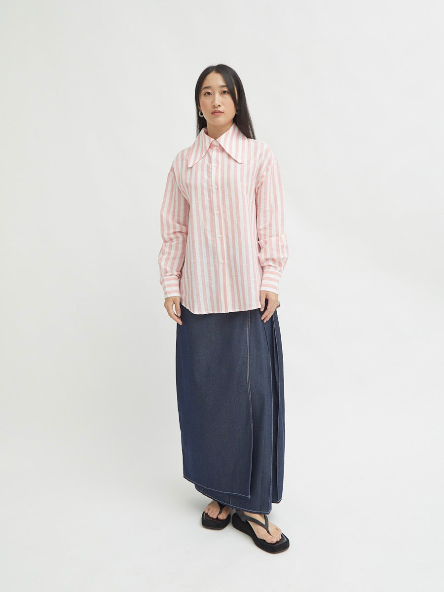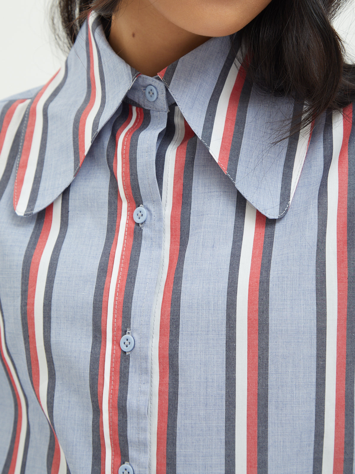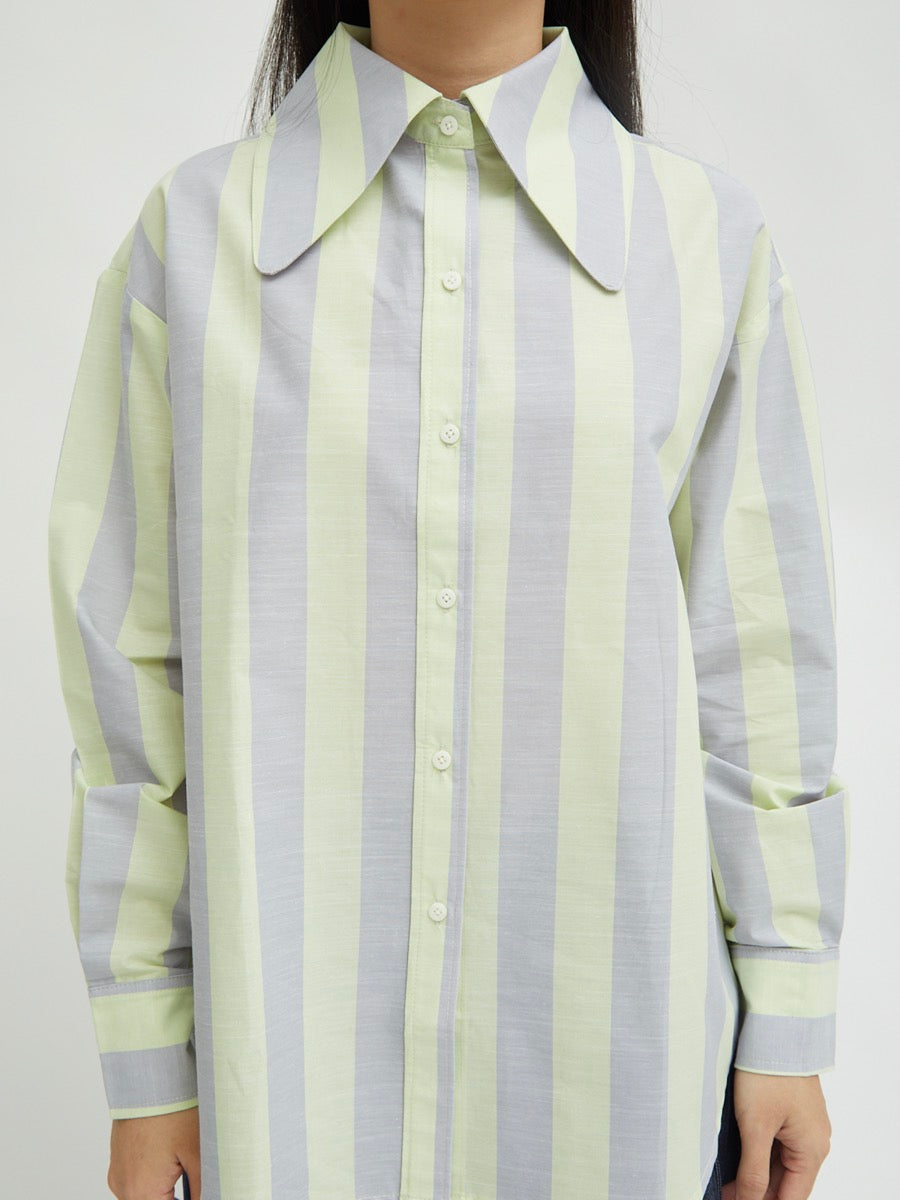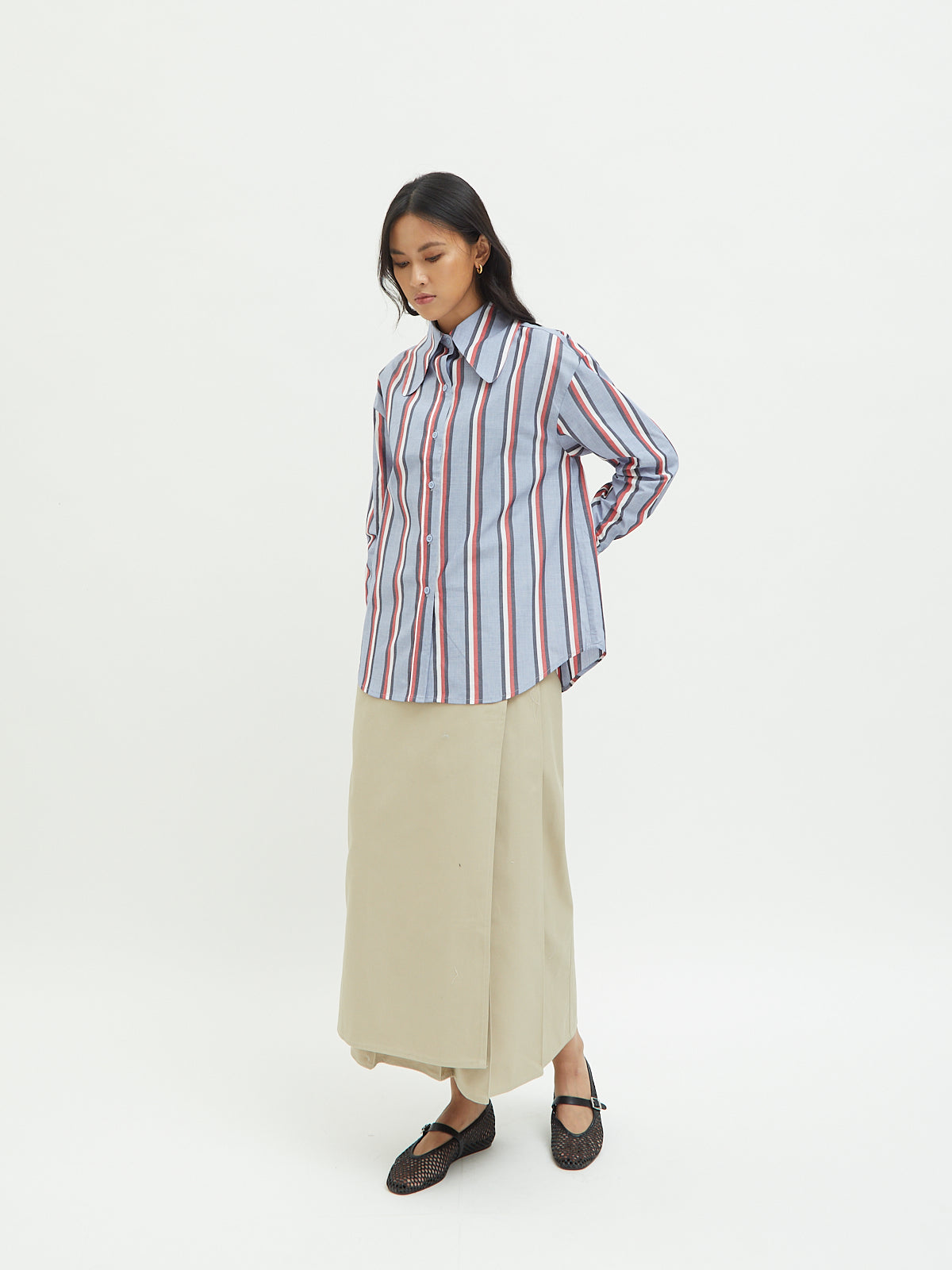 Kemeja wanita lengan panjang ini didesain dengan detail full kancing di bagian depan. Memiliki detail kerah kemeja yang besar sehingga memberikan kesan yang unik. Memiliki siluet bagian bawah yang melengkung. Memiliki bahan yang halus sehingga nyaman saat dipakai. Cocok untuk dikenakan pada acara formal maupun non formal.